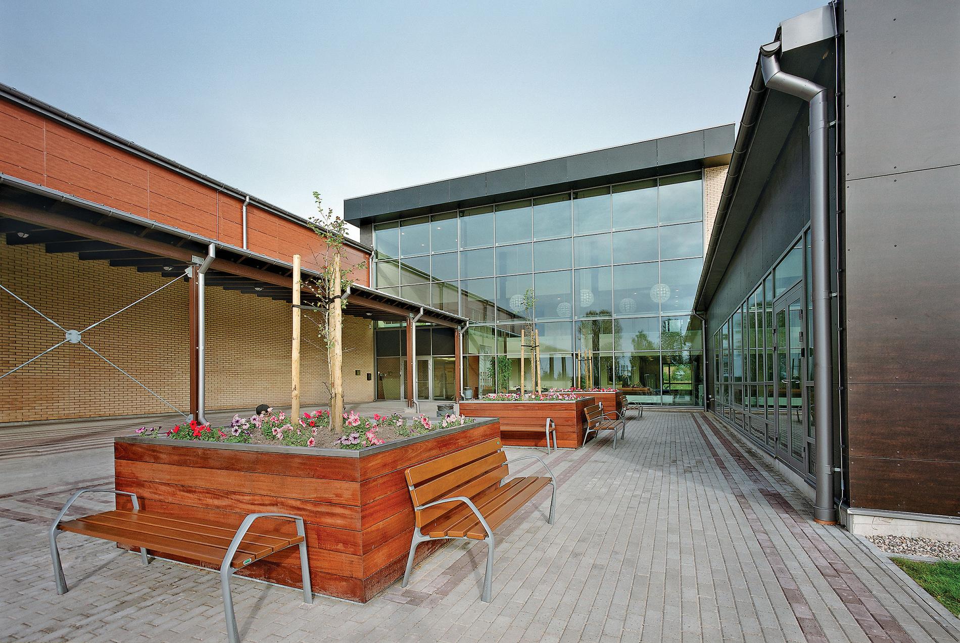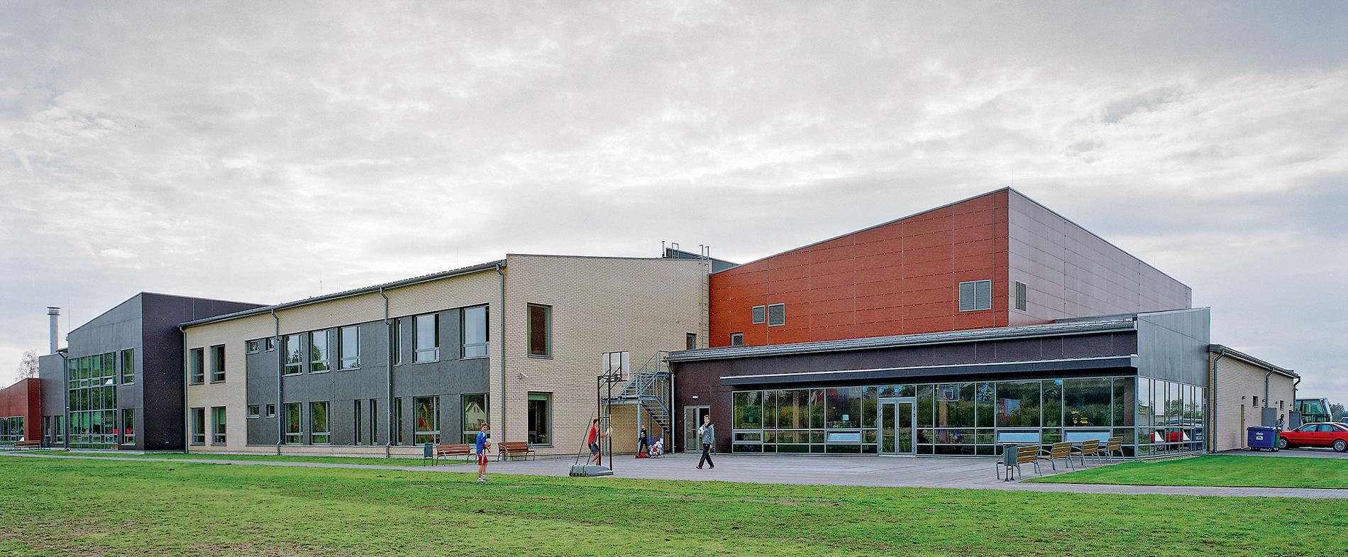 Skolas mērogs, tēls, kompozīcija un materiāli atbilst apkārtnei un ēkas funkcijai. Tuvinot fasādes apdari vietējās vides prasībām, izvēlēti keramiskie apdares ķieģeļi un piekaramās ventilējamās fasādes ar koka imitācijas plātnēm - tā rodas mājīgums, bet nezūd skolas semantiskais raksturs. Galvenā ieeja akcentēta ar stiklotām konstrukcijām divu stāvu augstumā, vienlaikus radot plašuma izjūtu un dodot dienas gaismu gaiteņos. Vides pieejamību nodrošina pandusi, durvju ailas ir vismaz 90 cm platas, starp telpām nav sliekšņu, un, rēķinoties ar pusaudžu straujumu, lifta kabīnei izvēlēts paaugstinātas drošības aprīkojums.