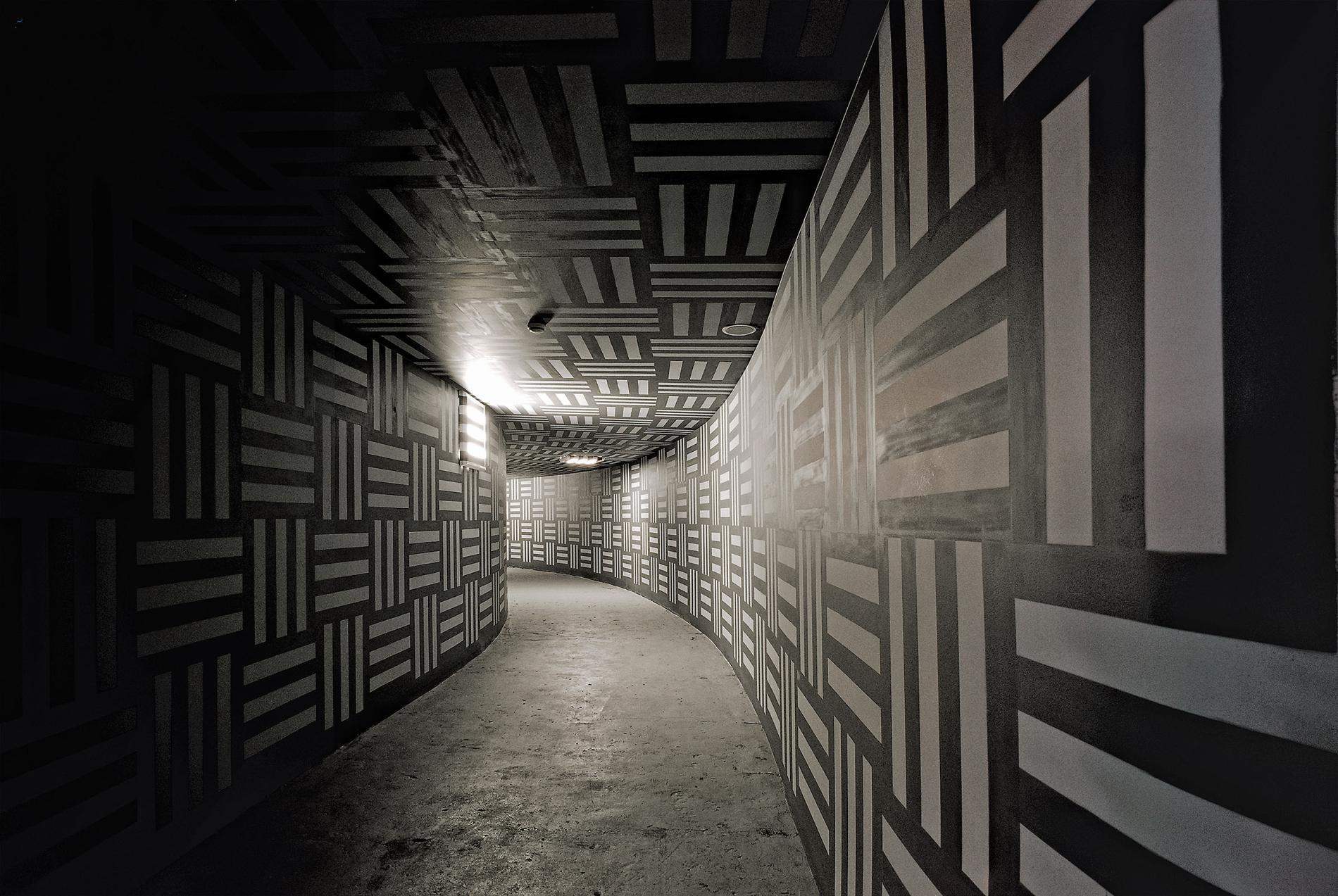 Krēsla kā akcents ir caurvijoša stīga «Palladium» koncertzāles prožektoru mirdzumā un grafiskajās gaismēnu spēlēs. Skatuves mute ir piķa melna, griesti - dubļu pelēki (pārkrāsoti vecie griesti), betona grīdas krāsojums arī pietonēts krēslas stundai, un to var uztvert kā pilsētas asfaltu. Skatuves sānsienas ir mākslinieciska brutālisma paraugs - cementa plāksnes ar nodrupumiem, krāsu notecējumiem, plaisām. Faktūru gleznieciskums ir vietā. Atsedzot paneļus pie skatuves malām, izrādījās, ka saglabājies vecais apmetums. Mākslinieki uzreiz pamanīja, ka esošās rievas atbilst strīpu principam, tāpēc apmetumu saglabāja un radoši papildināja. Negaidīts ir zāles grīdas iesegums - sadarbībā ar brāļiem Dambergiem no Kalnciema ielas kvartāla pēc mākslinieku zīmējuma tapa oša grīda, veidota no 800x800 mm paneļiem. Radīti astoņi dažādi grīdas paneļi, kurus miksējot panākts efekts, ka grīdas raksts neatkārtojas. Raksts, ar laiku nobružājoties, radīs interesantu patinas efektu. Vai grīda izturēs enerģiskos jauniešu lēcienus? Izturēs - par to grīdas ražotāji ir droši.