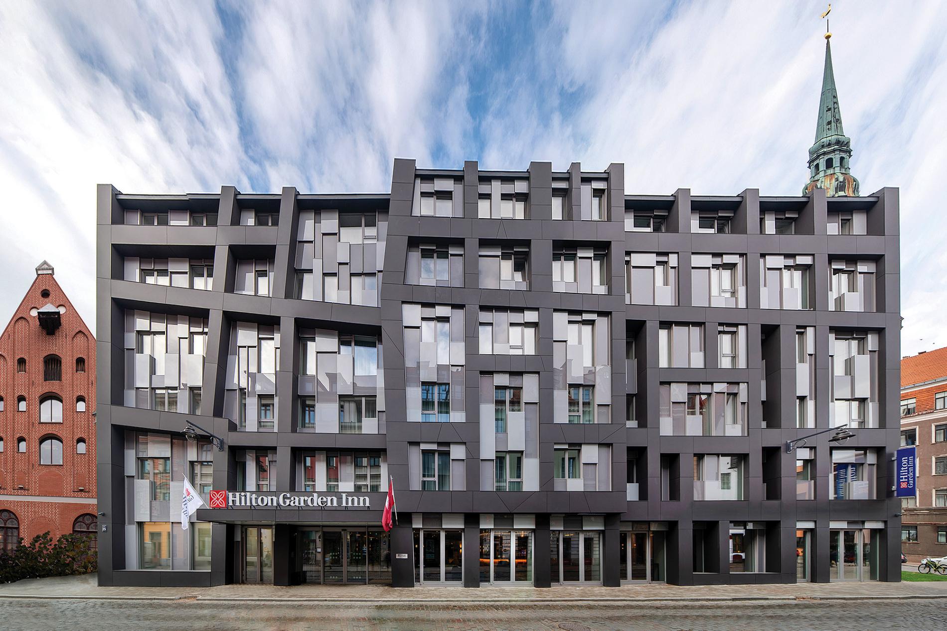 Ceļotājiem, kuri meklē ne tikai komfortu, bet arī unikālu un neaizmirstamu vizuālo pieredzi, pēc apmešanās Vecrīgas pašā kodolā, blakus Rātslaukumam, viesnīcā ar garo un ietilpīgo nosaukumu Hilton Garden Inn Riga Old Town, atliek vien atkāpties no ēkas ieejas un paraudzīties uz jaunbūvi, kuras fasāde nav tik viegli saprotama, bet gidiem var kalpot kā uzskatāms vizuāls palīgs Rātslaukuma apkārtnes dramatiskās vēstures īsam skaidrojumam.
