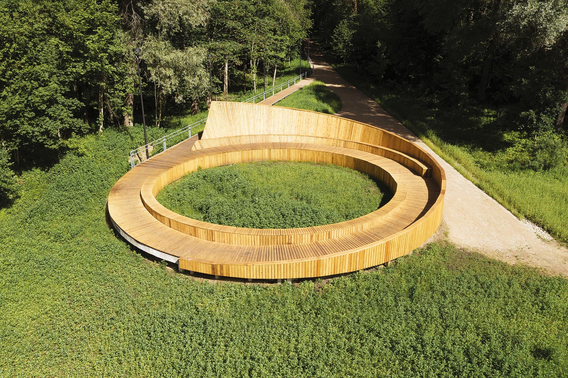 Pēdējos gados globālajā arhitektūras telpā aizvien pamanāmākas kļūst apļveida struktūras, kas pieļauj ainavas pilnasinīgu 360 grādu pieredzi. Šogad ainavu arhitektūras entuziastu uzmanību piesaistīja Eiropā pirmais veloceliņš, kas savu 700 metru garo loku 100 metru diametrā izvij cauri koku biezoknim - to pusstumbra augstumā ar pakāpenisku slīpuma maiņu (arhitektu birojs «Burolandschap», 2019). Savukārt apļveida struktūra 334 grādu interpretācijā realizēta 7,6 metrus augstas pastaigu takas formā virs Dienvidmorāvijas reģiona vīna dārziem («Keeo4design», 2018). Nesen arhitektūras entuziastu uzmanības lokā nonāca 45 metrus augsts spirālveida novērošanas tornis, kas pacēlās virs koku galotnēm stundas brauciena attālumā no Kopenhāgenas («EFFEKT», 2017), bet Dānijas pilsētas Orhūsas gleznainās piekrastes ainavā pirms neilga laika tika realizēta ievērojama skulptūra uz ūdens - «Bezgalīgais tilts» («Gjøde&Povlsgaard Arkitekter», 2015).