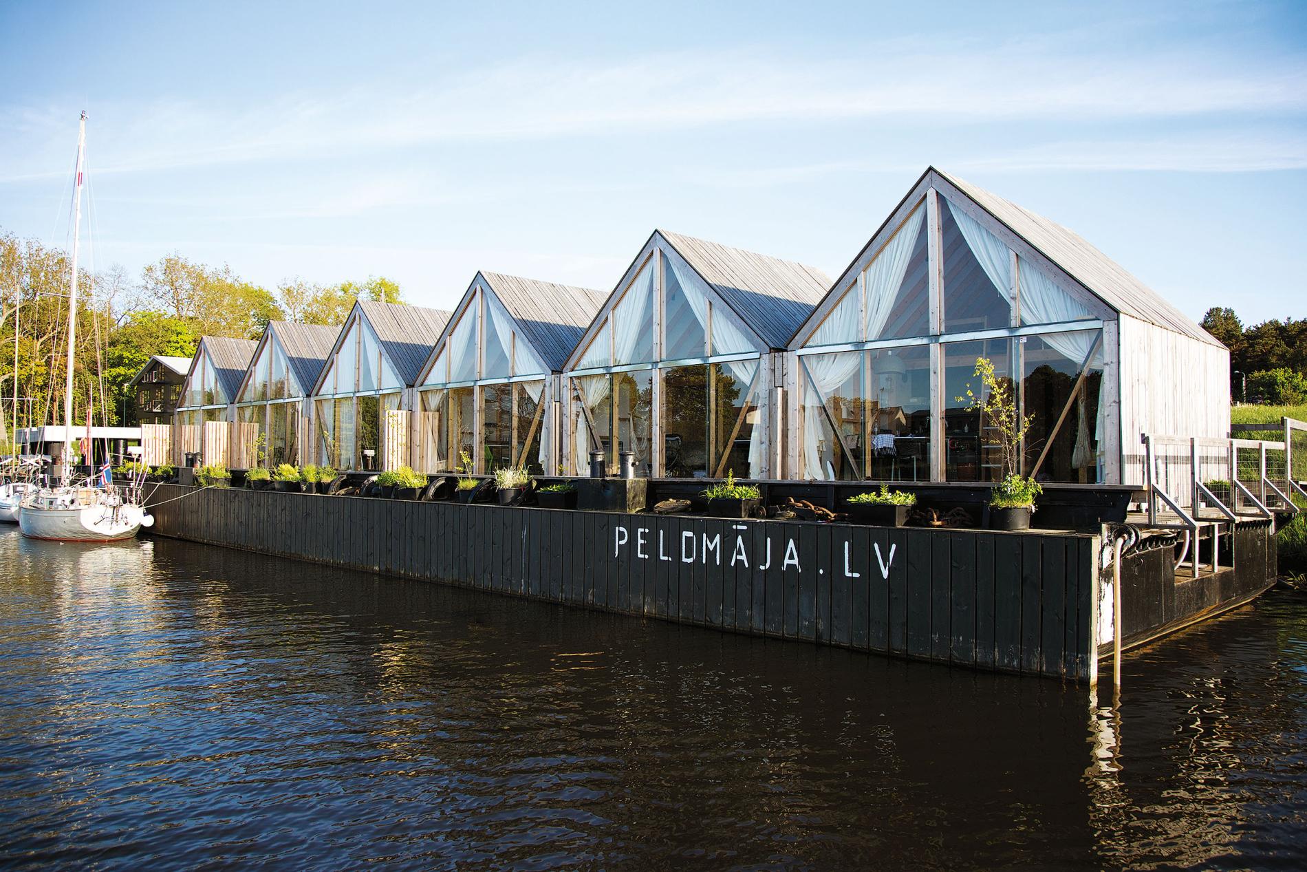 Jau ceturto gadu pretī Pāvilostas vēsturiskajam centram, Sakas upes krastā, vasaras sezonā viesiem ir atvērta peldmāja - sešu namiņu komplekss uz peldošas piestātnes. Savulaik, 2009. gadā, peldmājas turpat, pretējā Sakas upes pusē, projektēja arhitektu birojs NRJA, bet projekts netika realizēts. Atšķirībā no Skandināvijas Latvijā peldošu būvju joprojām ir maz, lai arī ūdensmalu netrūkst. Mums nepierasto peldmāju tipoloģiju pārstāv peldošās darbnīcas Andrejsalā un AB dambī un pa kādam tradicionālam peldošam viesu namam ezeros, taču Pāvilostas peldmāja ir pirmais laikmetīgas, arhitektoniski augstvērtīgas peldošas būves piemērs Latvijā.
