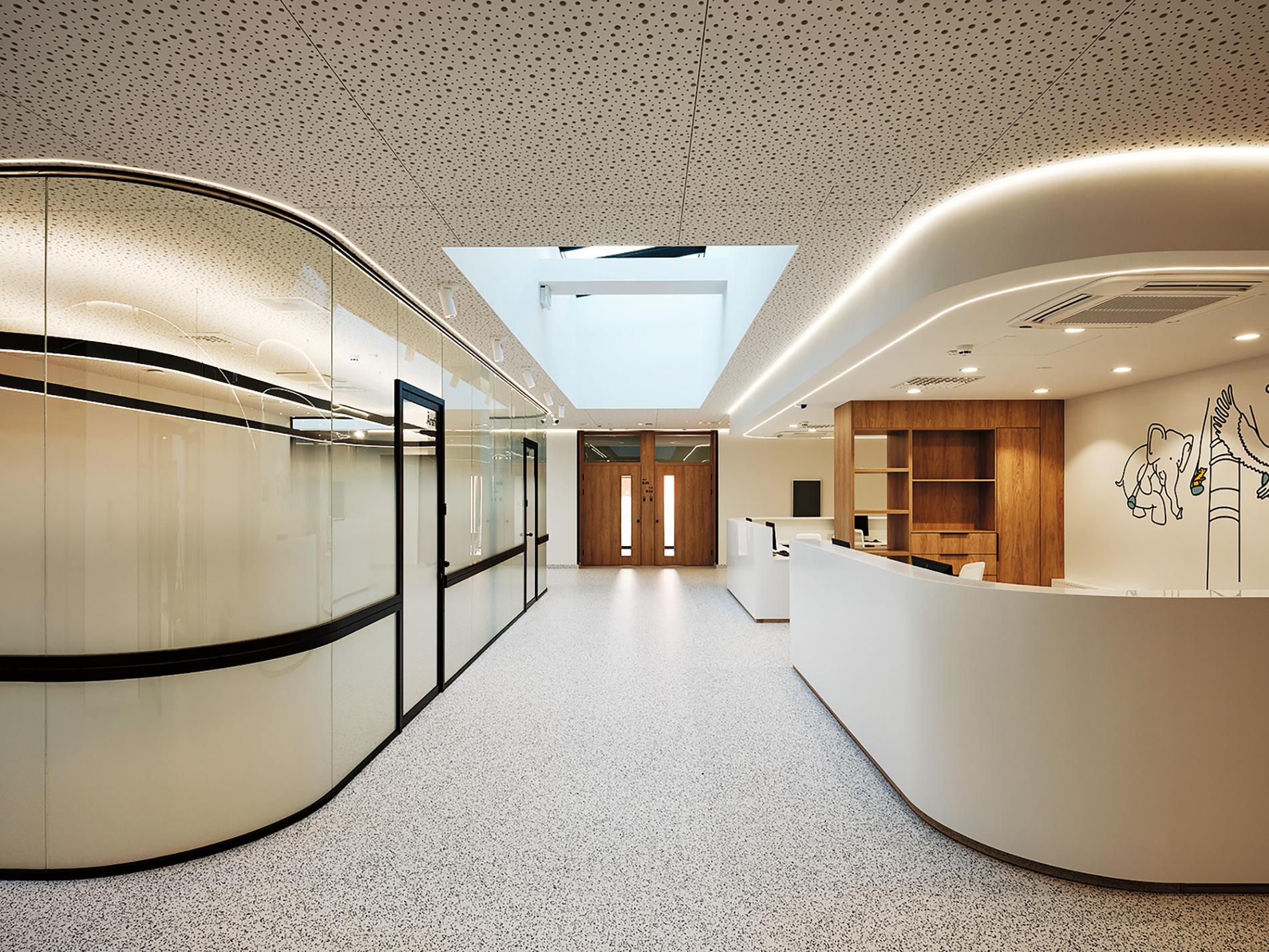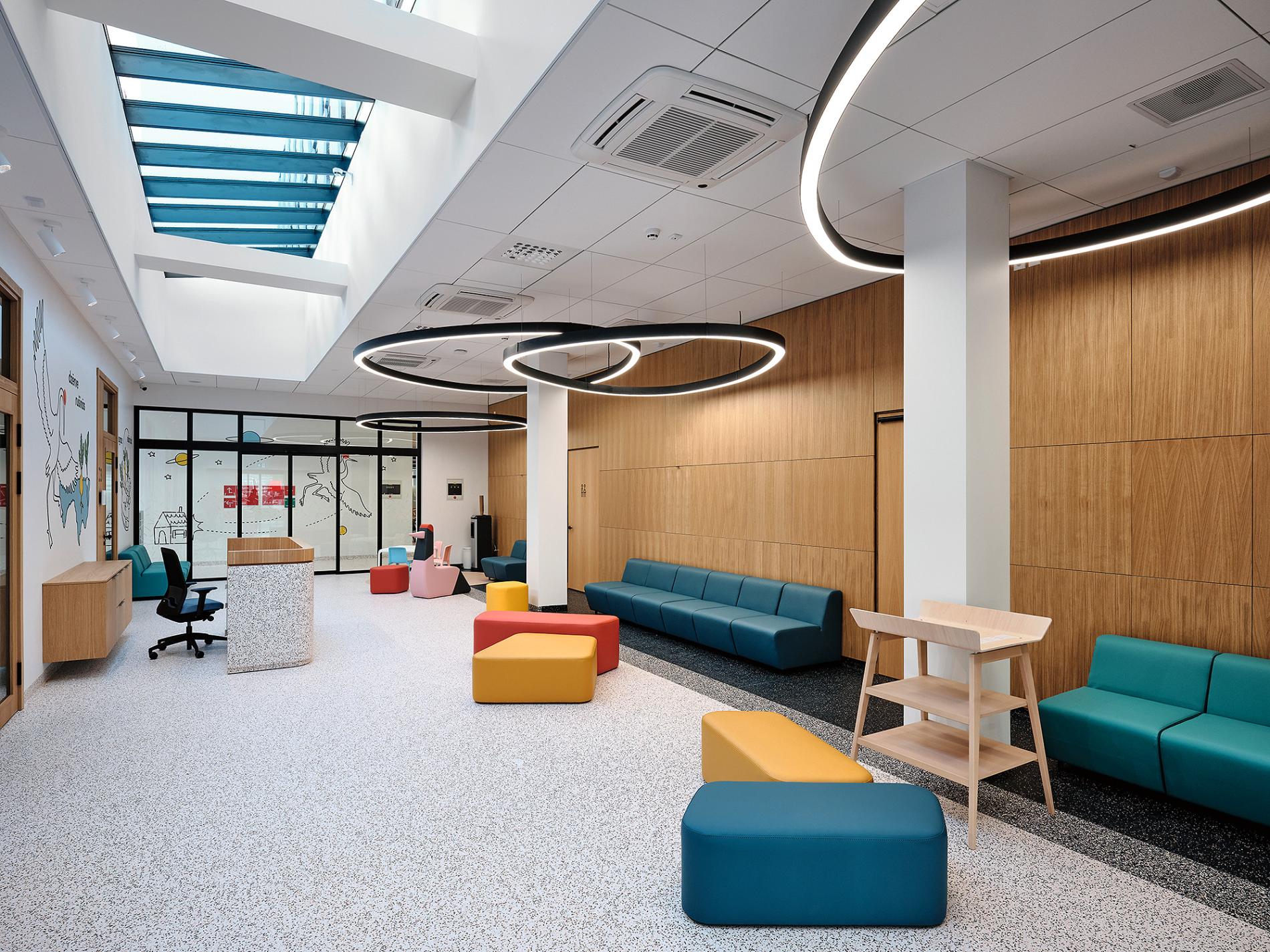 Gaišās un plašās telpas ļoti kontrastē ar medicīnas iestādēm tik ierastajiem garajiem gaiteņiem un nelielajām kabinetu kabatām. Bet tāds arī bijis projekta radītāju mērķis - ar vizuālo paņēmienu palīdzību pēc iespējas novirzīt bērnu un vecāku domas no slimības. Šāda pieeja uzlabo vides kvalitāti un lauž līdzšinējos priekšstatus par gaisotni slimnīcās.