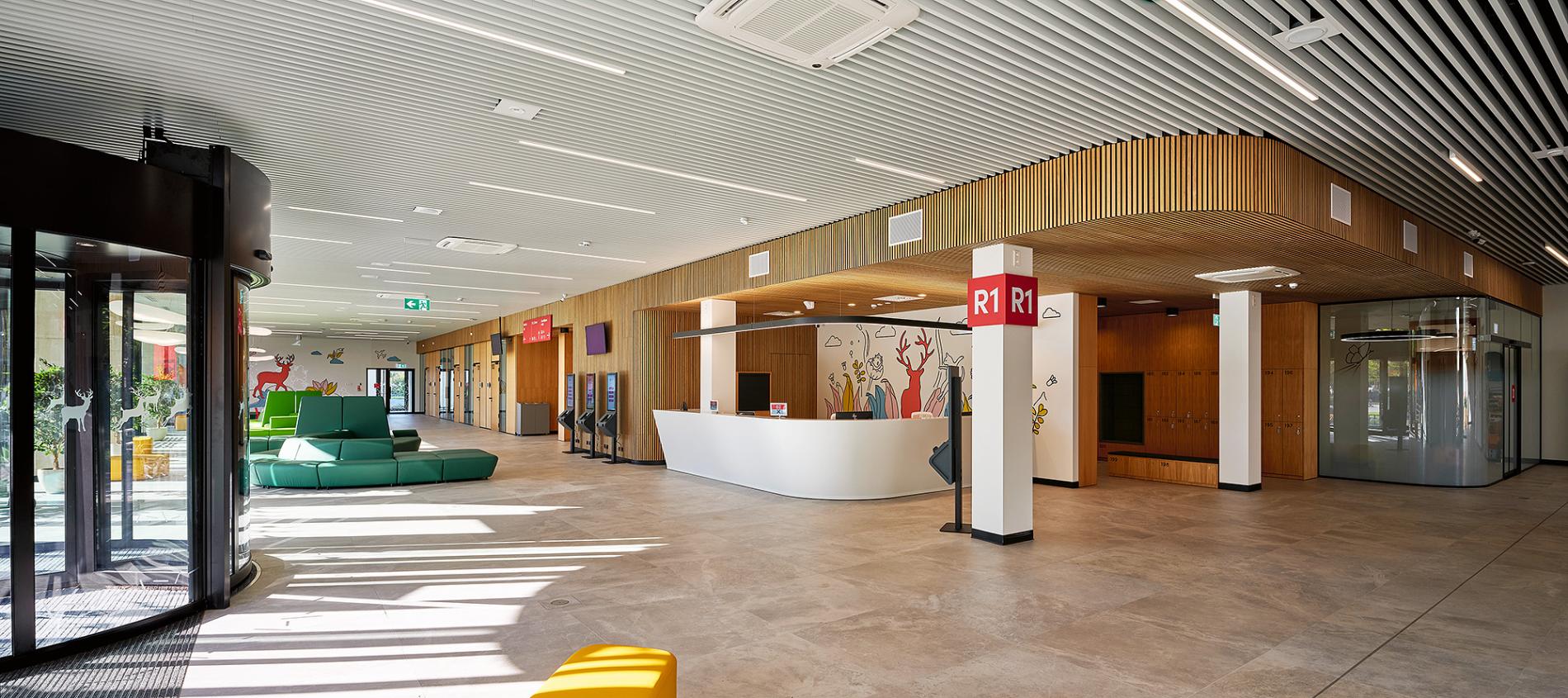 Telpiskā organizācija ir visa pamatā. Sarežģītās slimnīcas funkcijas «MARK arhitektiem» interjera plānojumā izdevies apvienot, veidojot skaidri nodalītus ceļus un aprūpes salas, ko papildina grafiskie orientieri. Aprūpes salas apvienotas ar plašām uzgaidāmajām zonām, kas izgaismotas ar virsgaismām.
