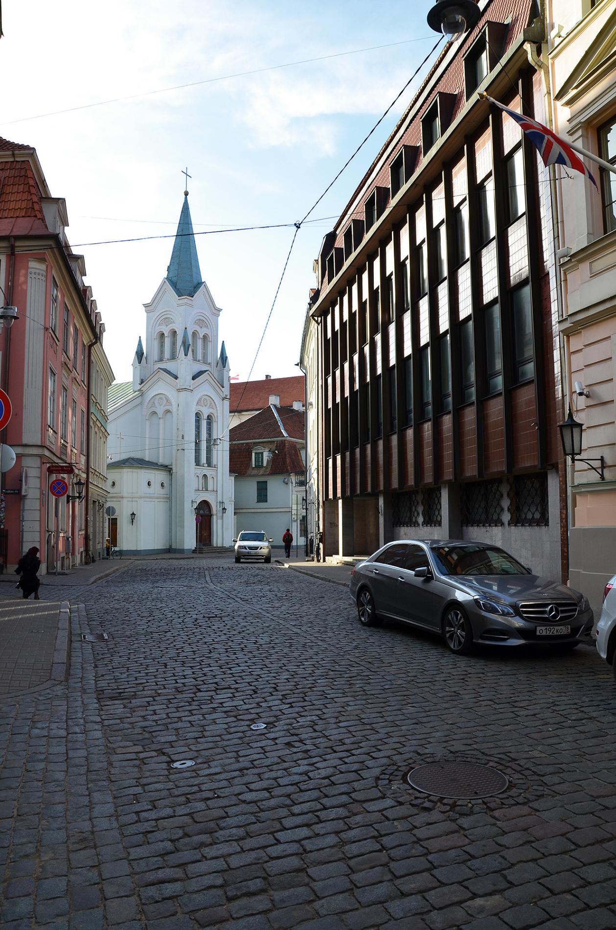 Ejot pa Pils ielu, vēstniecības ēka piesaista uzmanību ar savu vizuāli vieglo un pelēcīgi lakonisko fasādi.