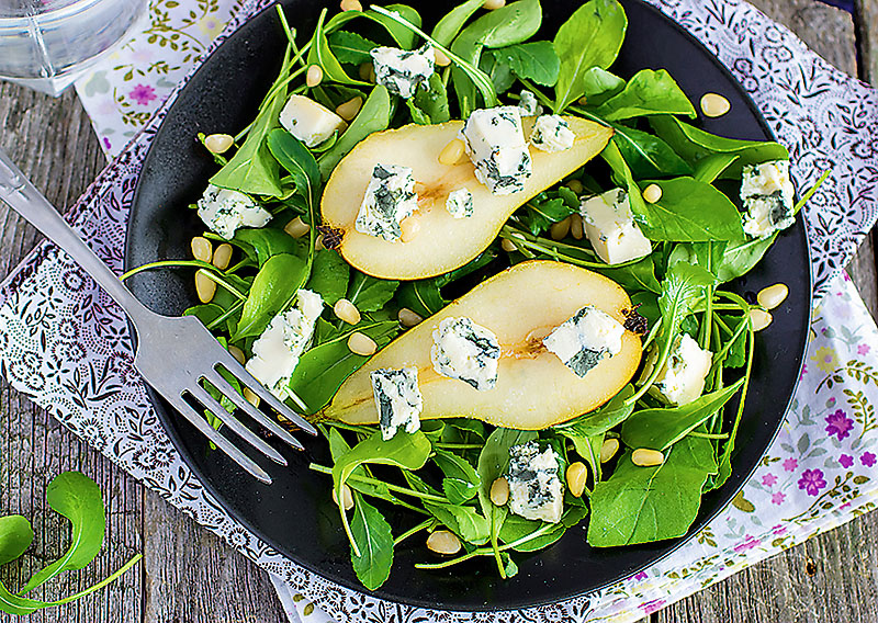 2. grupa Kaut kas no olbaltumvielu grupas: vārīta ola, vistas vai tītara gaļa, šķiņķis vai desa, zivis, siers, kukurūza, pupiņas, zaļie zirnīši. Ar aso rukolu labi saderēsies siers ar zilo pelējumu, bet, ja salātos ir bietes, droši pievieno tiem kazas sieru.