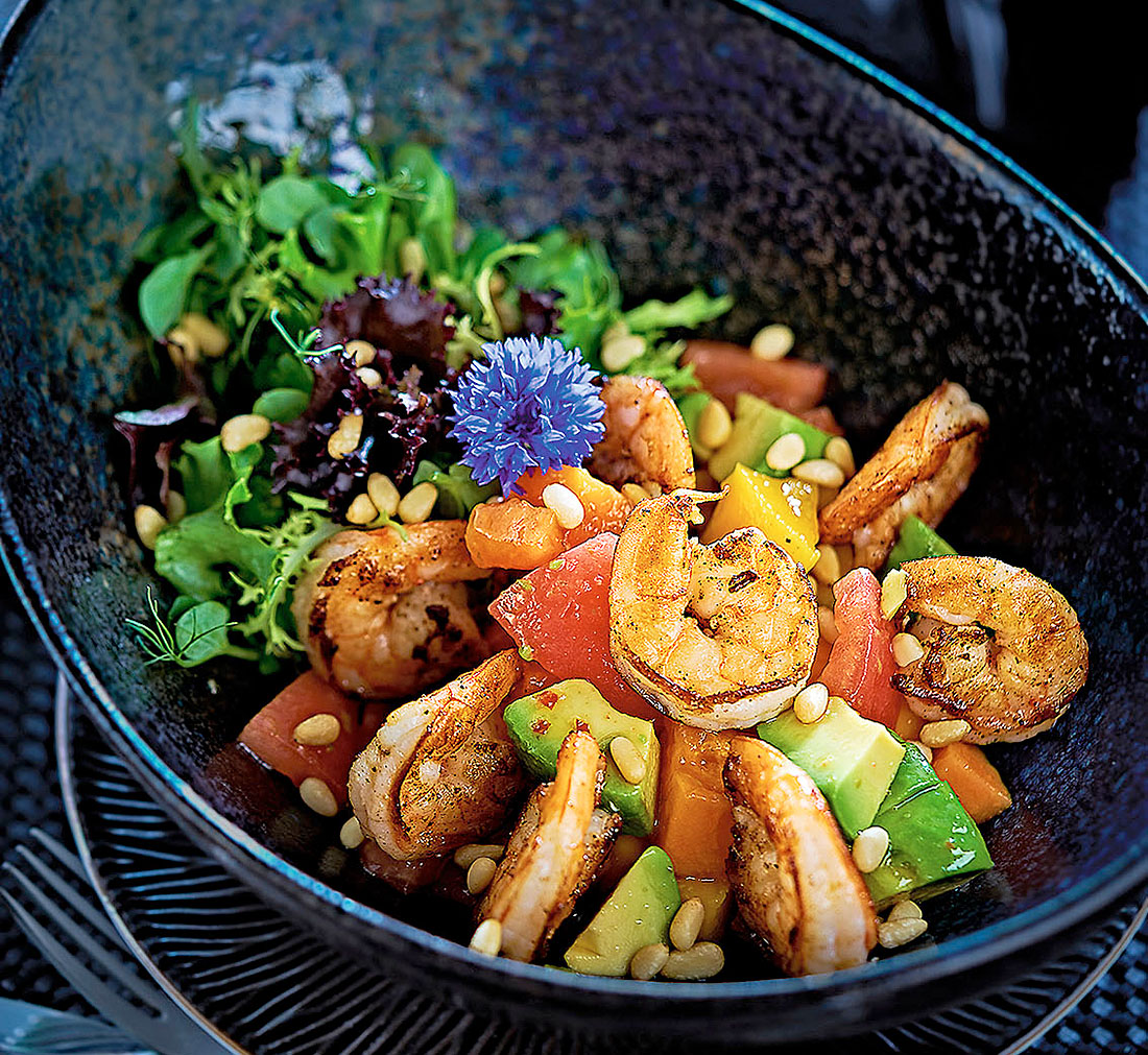 Tīģergarneļu, avokado un mango salāti (International Riga)
