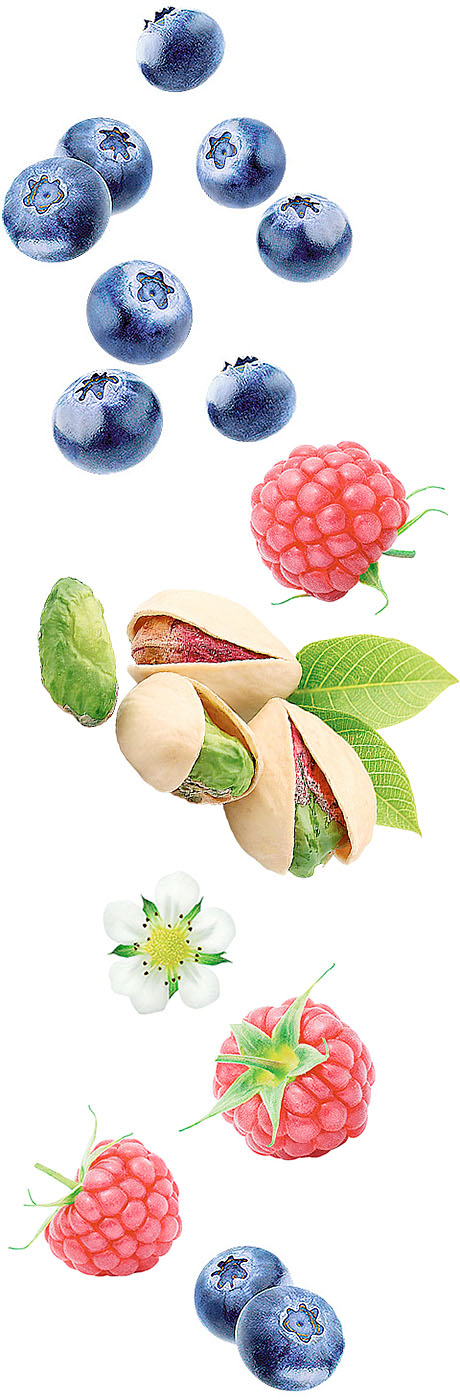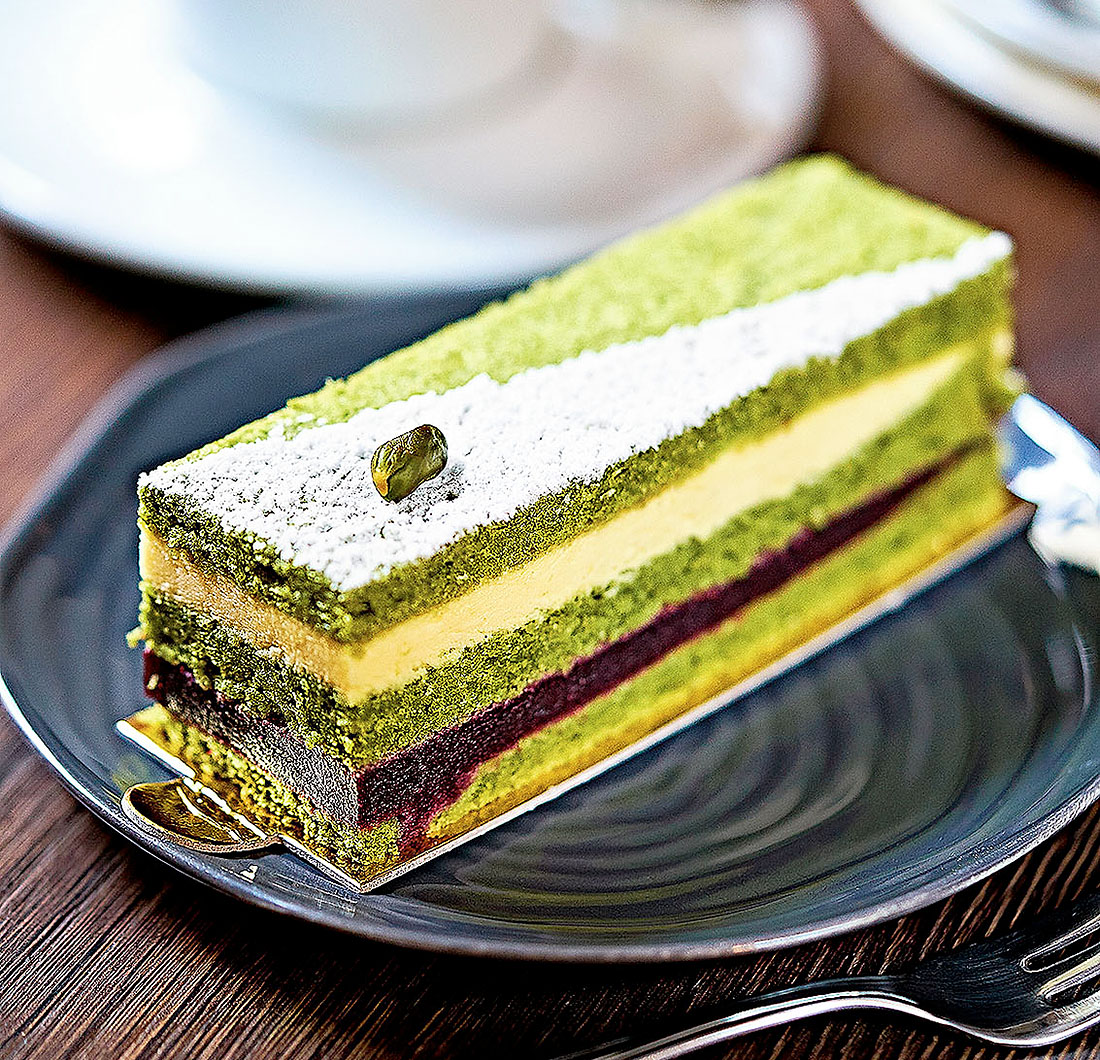 Biskvīta gatavošana Samaisi cukuru (40 g) ar mandeļu miltiem, olu dzeltenumiem, pistāciju pastu un cieti, pievieno izkausētu sviestu. Atsevišķi ar cukuru (10 g) stingri saputo olu baltumus un uzmanīgi iemaisi mīklā. Mīklu izrullē tā, lai sanāk trīs biskvīta ripas, un cep tās 160 grādos 10 minūtes. Uz pirmā biskvīta liec ogu krēmu. Pārklāj to ar otru biskvītu un uz pusstundu ieliec ledusskapī. Pēc tam liec piena krēmu un pārklāj ar trešo biskvītu. Liec ledusskapī.