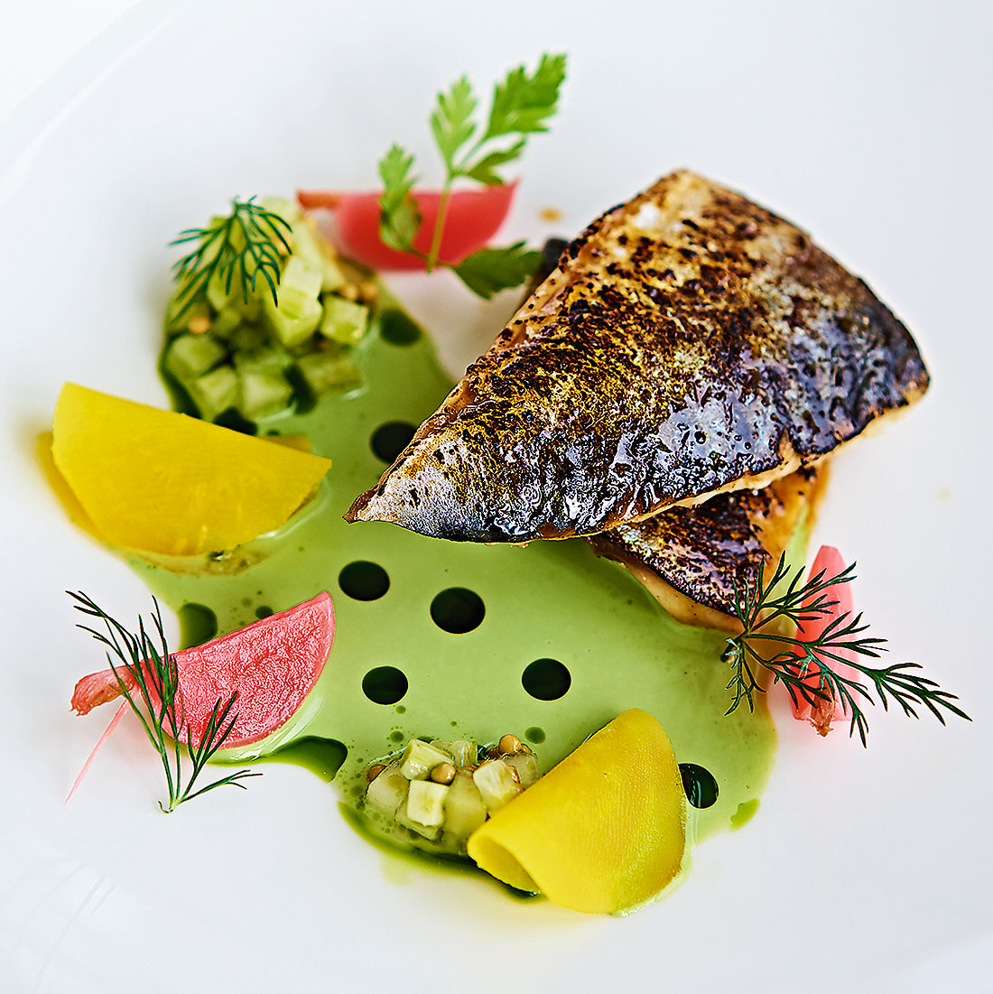 Uz oglēm cepta skumbrija ar skābeņu mērci četrām porcijām