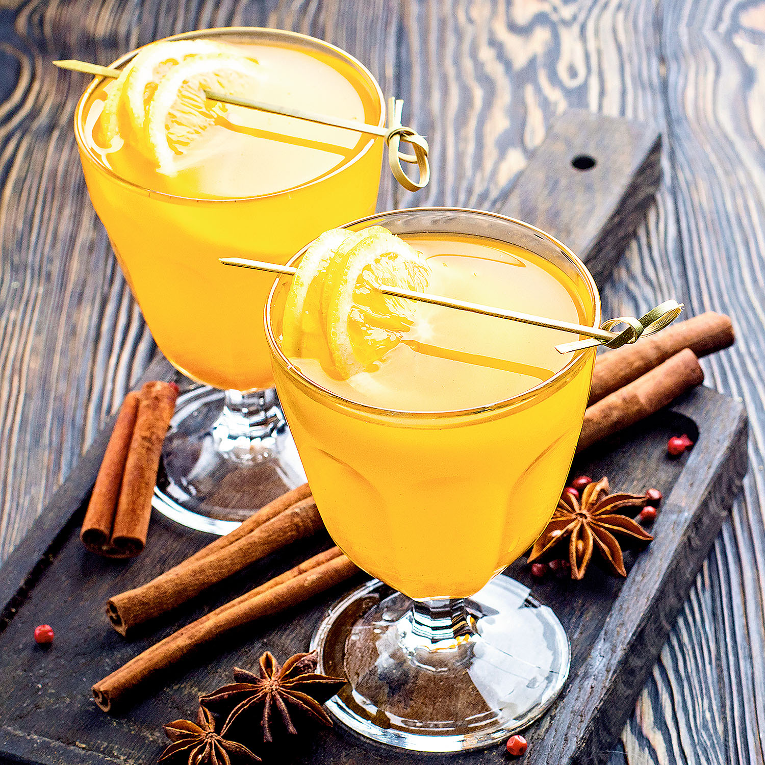 Pasniegšana Silto kokteili lej glāzē, dekorē ar apelsīna daiviņu vai smiltsērkšķu ogām. Pēc vēlēšanās var pievienot medu.