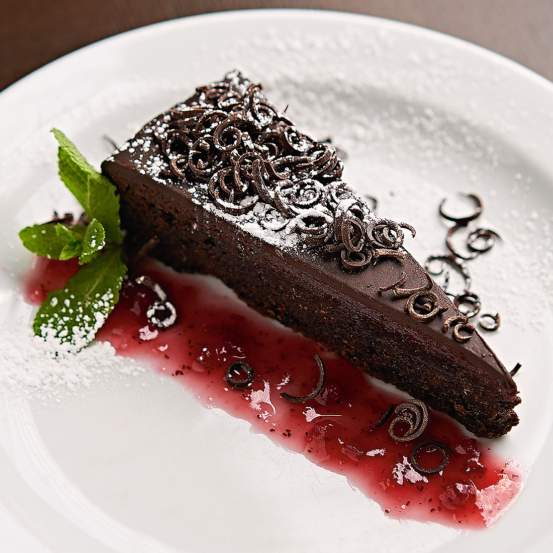 Pasniegšana Sagriez torti gabaliņos un pasniedz ar brūkleņu vai dzērveņu ievārījumu, ko kā svītras uzlej uz šķīvja blakus tortei. Pārkaisi ar pūdercukuru, dekorē ar piparmētras lapiņu.