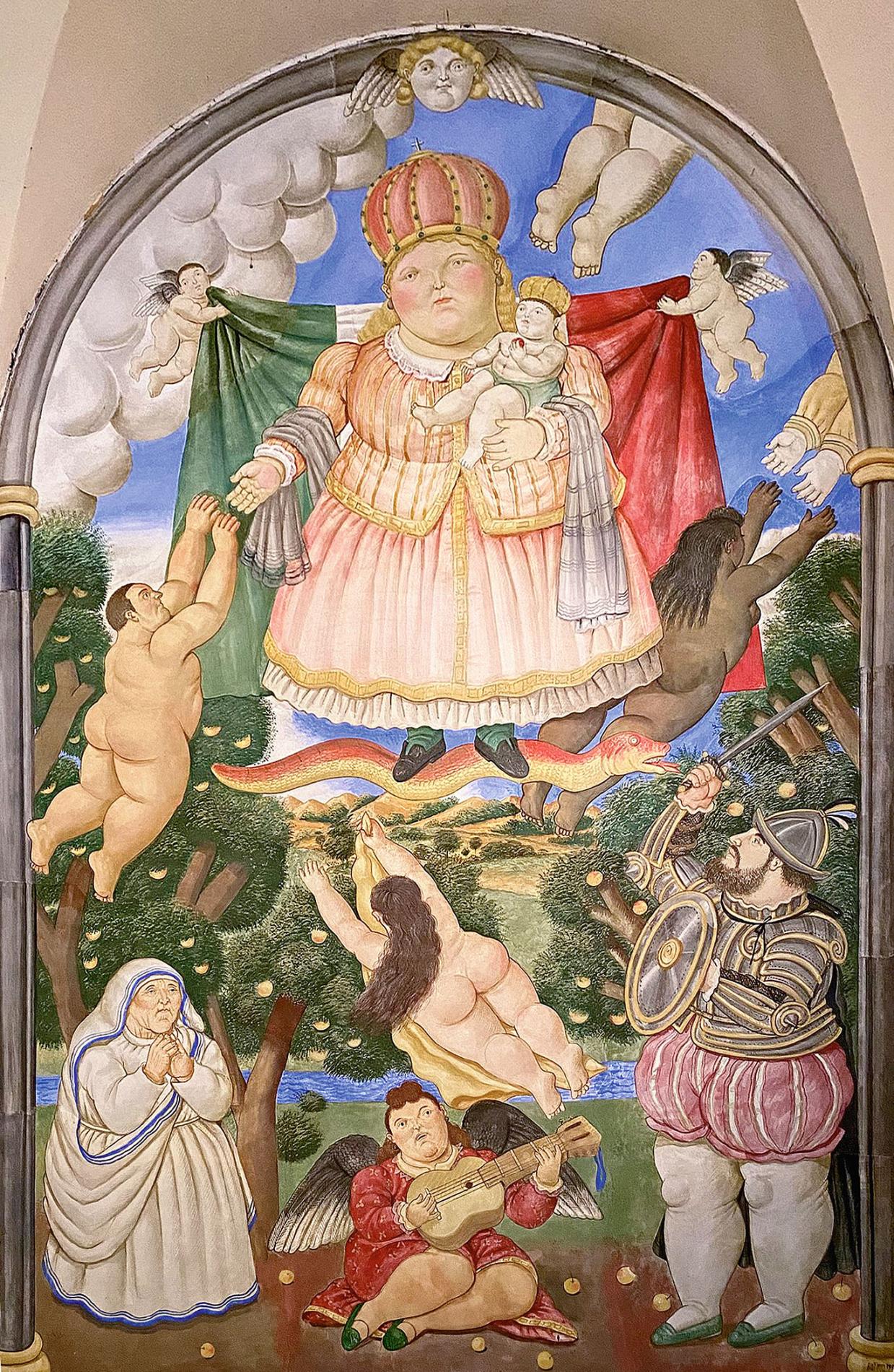 Šoreiz vēlos pievērst uzma nību Fernando Botero satīriskajai fres kai Itālijas pilsētiņas Petrasantas baznīcā. 1993. gadā Botero pabeidza divas freskas - Porta Paradiso (attēlā) un Porta Dell’Inferno.