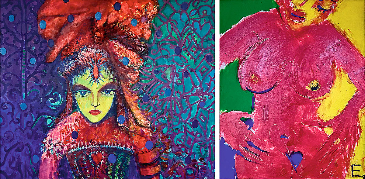 Abi darbi ir bez nosaukuma, koši, skaisti - kā jau pati Elita. Tie dod man krāsu enerģiju Diezgan bieži, ejot garām lielās gleznas meitenei - jo glezna ir izmēros ļoti liela -, apstājos, ieskatos viņas acīs, sasveicinos un tā sāku savu jauno krāsaino dienu.