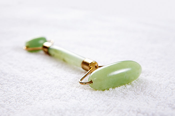Masāža ar nefrīta rullīti noderēs jebkurā gadījumā. Virzi rullīti pa katru masāžas līniju 6-8 reizes uz abām pusēm. Nefrītu dievina ķīnieši, kuri to uzskata par ārstniecisku akmeni. Tas lieliski atbrīvo no tūskas un tonizē, pateicoties tam, ka uz ādas virsmas izveidojas viegls statikas lādiņš. Vari pamīšus veikt pašmasāžu ar pirkstiem un ar nefrītu, katru kursu trīs nedēļas.