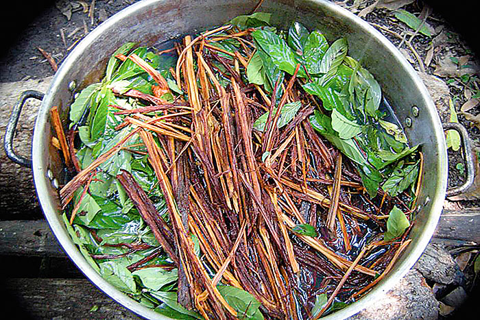 Rituāla laikā cilvēkam dod iedzert divu augu novārījumu. Viens ir nāves liāna (Banisteriopsis caapi), otrs visbiežāk - čakrūna (Psychotria viridis). Šamaņi var pievienot vēl kādus pāris desmitus dažādu sastāvdaļu iedarbības mainīšanai vai pastiprināšanai. Dzēriens liek cilvēkam iegrimt transa stāvoklī. Saprāts atslēdzas, bet dvēsele ceļo pa citām pasaulēm. Vienlaikus preparāts attīra organismu no toksīniem un parazītiem. Mēdz būt gan nelabums, gan vemšana. Pirms rituāla bieži vien jāievēro diēta, lai nerastos konflikti starp pārtikas produktiem un augos esošajām aktīvajām vielām. Parasti cilvēks viena rituāla laikā izdzer trīs porcijas novārījuma un piedzīvo trīs seansus.