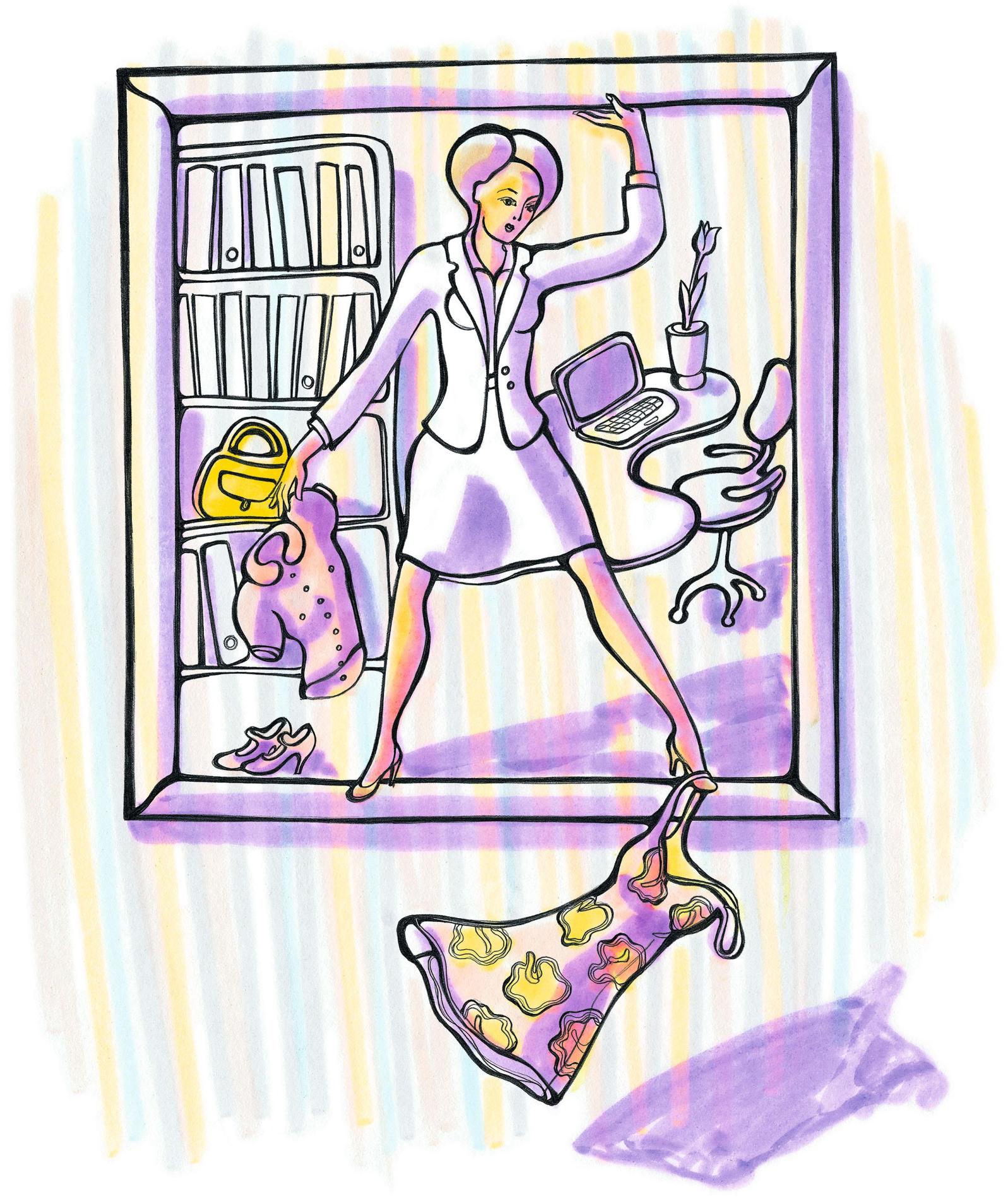 • tīras (!) lakādas (ar šo, lūdzu, pie psihologa) kurpes neitrālā krāsā uz papēža (!);