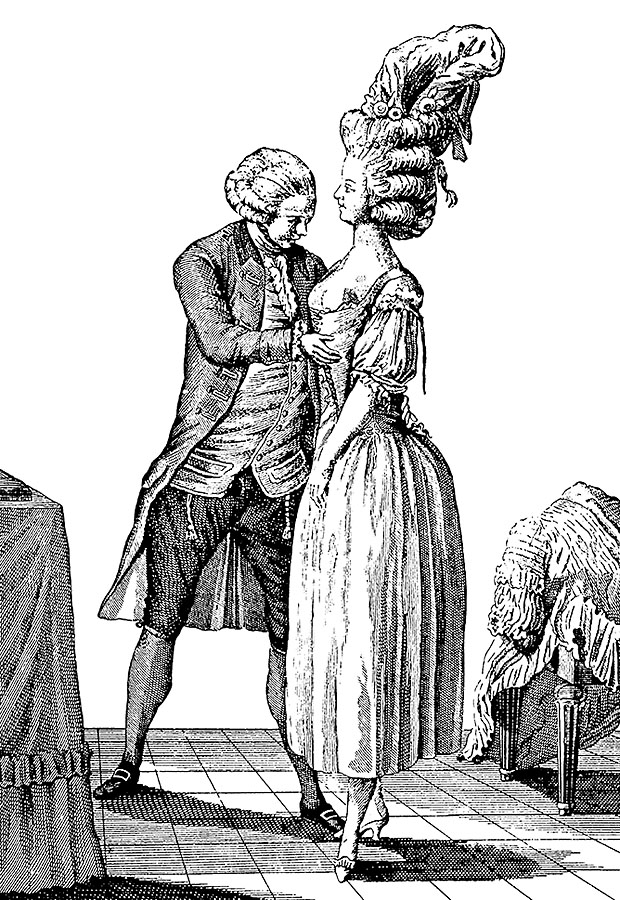 Arī drēbniekiem, kuri šuva kungiem, bija ieteikts, noņemot mērus, īpaši neskatīties uz klientu - par spīti tam, ka nācās, piemēram, smalkjūtīgi uzzināt, kurā pusē kungs glabā savu vīrišķo mantību, lai pareizi, ar vajadzīgo uzlaidumu piegrieztu bikses.