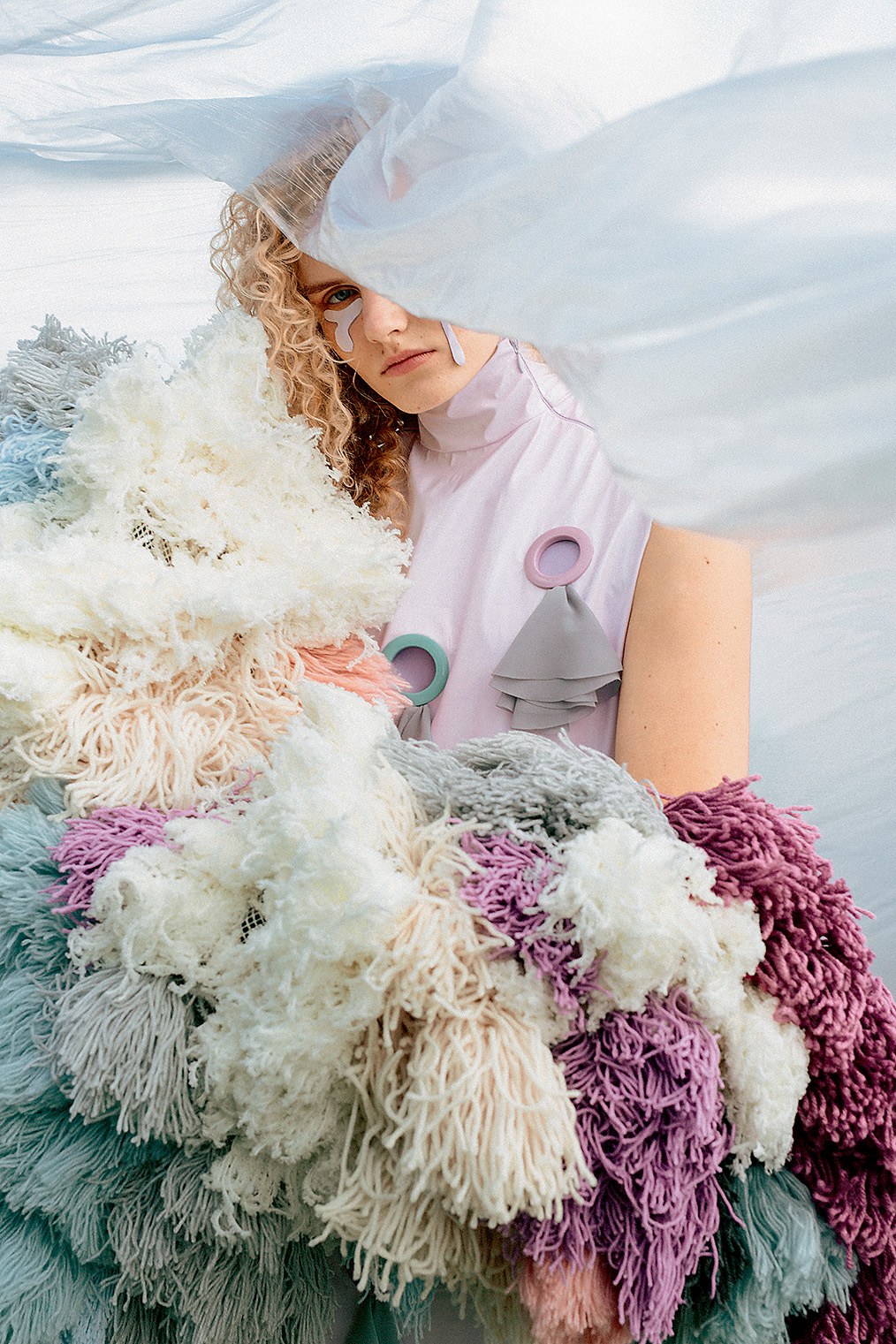 Bakalaura darbā rakstīju, ka mani vada impulsi un sajūtas, nevis konkrēta iedvesma. Bet standarta pieeja ir - tev jāsāk ar iedvesmas avotu, tad veido moodboard, pēc tam attīsti idejas, zīmē ilustrācijas un realizē tās materiālā. Es visu daru otrādi. Un visus studiju gadus ļoti cīnījos pret sistēmu. Šīs iedvesmas meklēšana, šķiet, vairāk ir sabiedrības pieprasījums, iedoma, kaut kāds stereotips, kā māksliniekam būtu pareizi jāstrādā.
