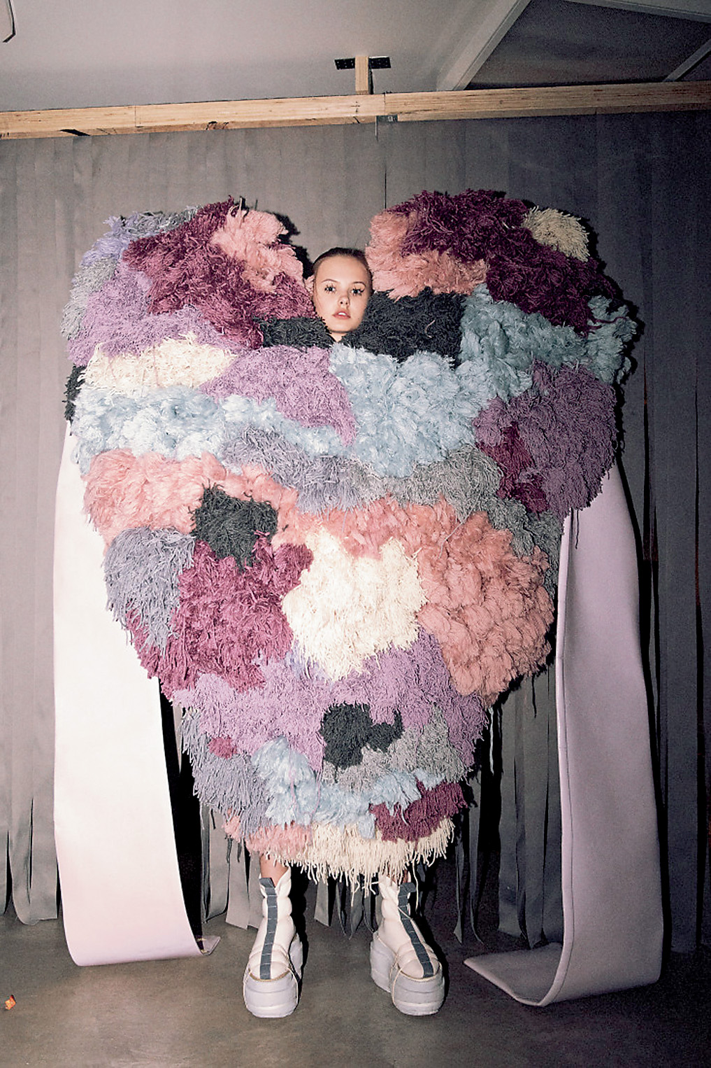 Pilnīgs izaicinājums! Iestājoties LMA, nesapratu, kā tas viss veidojas - tērps kā tāds. Kā viss saliekas kopā. Man bija idejas, daudz ideju, zīmējumu, bet nebija izpratnes par procesu. Kolekcija atnāca pāris dienu, pirms mums bija jāprezentē ideja. Sēdēju, zīmēju, bija kādas 20 skices. Aizgāju uz skolu, atlasīju trīs labākās, un starp tām arī parādījās mans pirmais apjoma darbs - lielā sirds. To pat neveidoju no materiāliem, kas paredzēti apģērbiem. Izmantoju celtniecības sietu, dzijas, stiep- les - visu, kas drīzāk attiecināms uz rokdarbiem. Tik īpaša sajūta, kad savu zīmējumu vari realizēt dzīvē. Tāds wow! Un tad mana pirmā modes skate… To nevar izstāstīt. Tu stāvi aizkulisēs un redzi, kā uz tevis radīto skatās simtiem cilvēku… Un tevī burtiski viss iekšā kņudinās. Pēc tam nāk atgriezeniskās saites vilnis. Šie labie, pacilājošie vārdi, apbrīna, komplimenti, atsauksmes. Tieši tobrīd es tā pa īstam sapratu, ka mode ir mana īstā un vienīgā iespējamā profesija. Pat uztaisīju sev par piemiņu spēka tetovējumu ar kolekcijas nosaukumu. Tas joprojām mani iedvesmo.