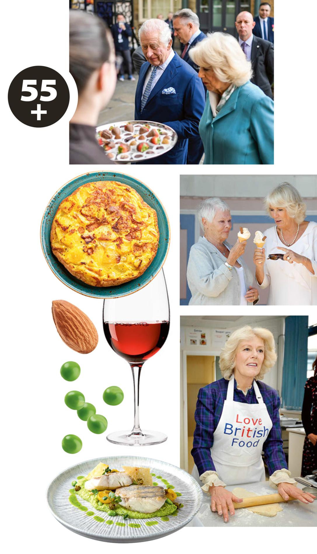 Sāksim ar to, ka karaliskajā galdā tiek celta tikai un vienīgi svaiga produkcija. Tie ir sezonas dārzeņi un augļi no pils dārziem un laukiem, lauku īpašumos nomedīto dzīvnieku gaļa un vietējās upēs svaigi ķertas zivis, svaigas oliņas no pašu vistiņām… Lielākoties viss ir pašu (pareizāk sakot, pašu cilvēku) sarūpēts. Vēl interesanti - lai gan karalis Čārlzs, Kamillas vīrs, atzīst veģetārisma principus, karaliene pie iespējas izvēlas gaļu. Jērs, vista, liellops… Retāk lasis. Un viss, ko nenotiesā pamata maltītē, pēc tam tiek prātīgi izmantots, piemēram, iestrādājot slavenajā ganu pīrāgā, vienā no Kamillas iecienītām uzkodām, kas ir ļoti gards.