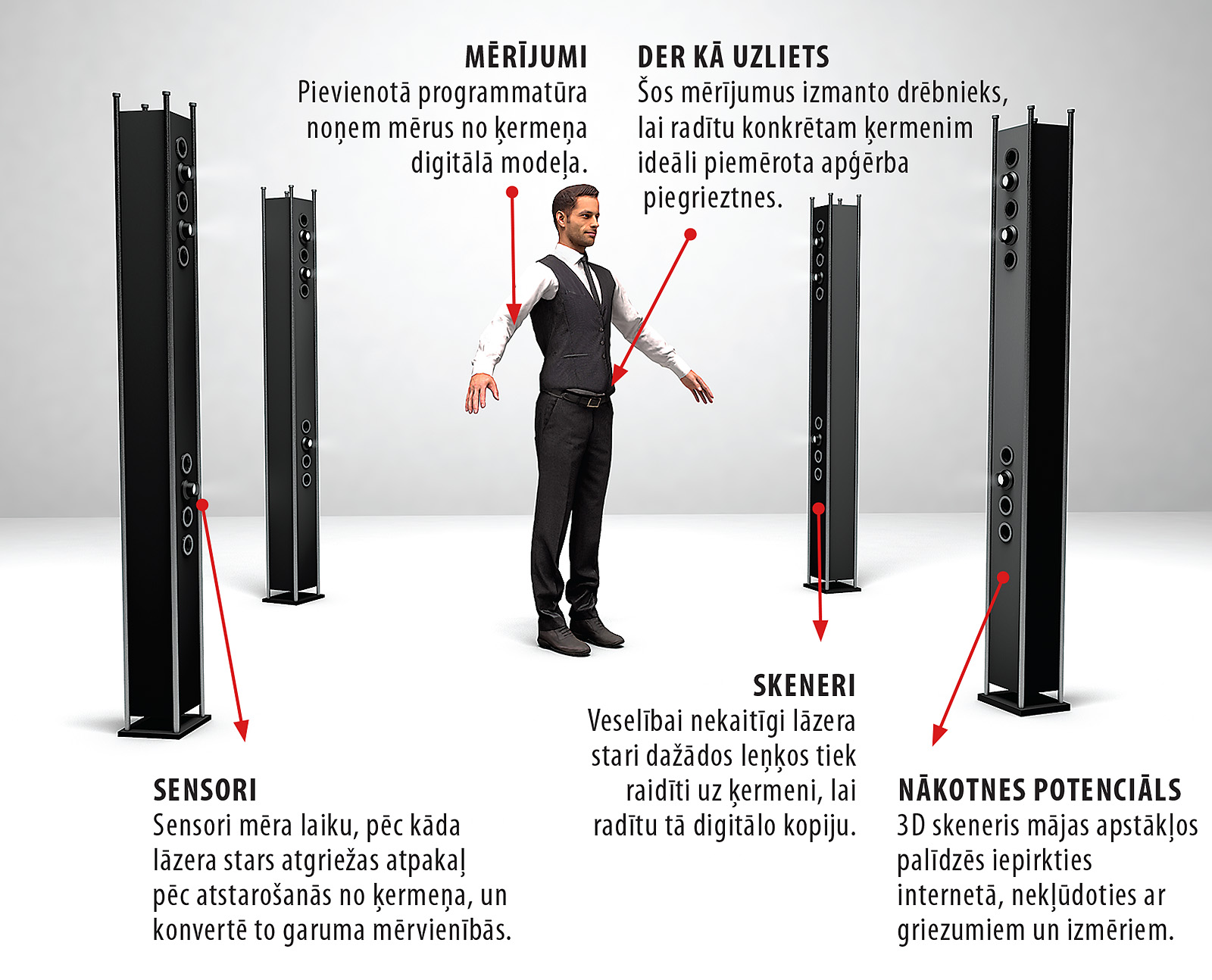Ja kaut reizi ir mēģināts pasūtīt apģērbu internetā, visdrīzāk ir pazīstama situācija, ka tas, ko tu saņem, bieži vien neder, neatbilst pēc izmēra. Arī iepērkoties dažādu zīmolu veikalos, katrā no tiem iespējams cits cipars vai burts uz apģērba birkas. Tas tādēļ, ka pasaulē pastāv atšķirīgi apģērbu izmēru standarti. Iespējams, tieši 3D skeneri drīz vien novērsīs šīs neērtības.