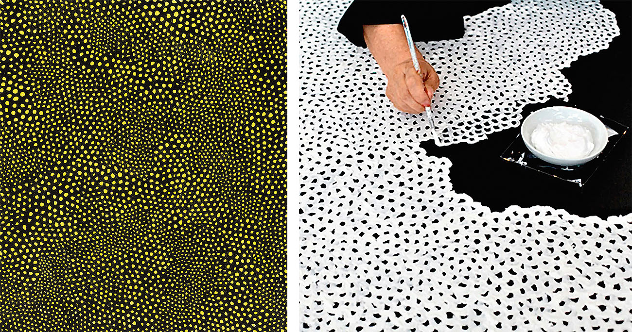 Radot viņai nav robežu - mode, performance, kino, literatūra, kolāžas, skulptūras un, protams, gleznas. Viņa - Jajoi Kusama - ir pasaulē populārākā māksliniece, saukta par punktiņu princesi. Un kāpēc ne, ja, sakot mākslinieces vārdiem: «Galu galā mēness ir punktiņš, saule ir punktiņš, un arī planēta Zeme, uz kuras dzīvojam, ir tik vien kā punktiņš.