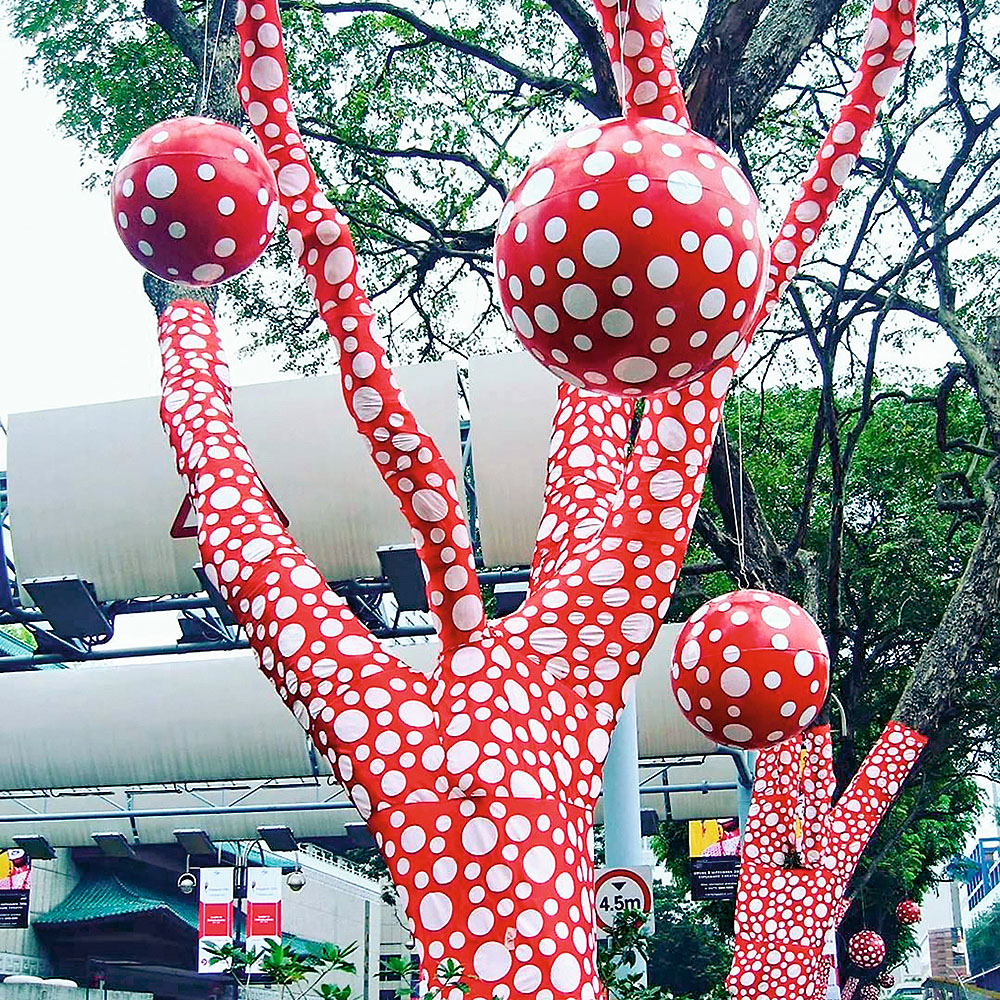 • Jajoi Kusamas izstādes skaitās visapmeklētākās pasaulē. Viņa arī ir visvairāk ietagotā māksliniece Instagram ar vairāk nekā 80 miljoniem ierakstu.
