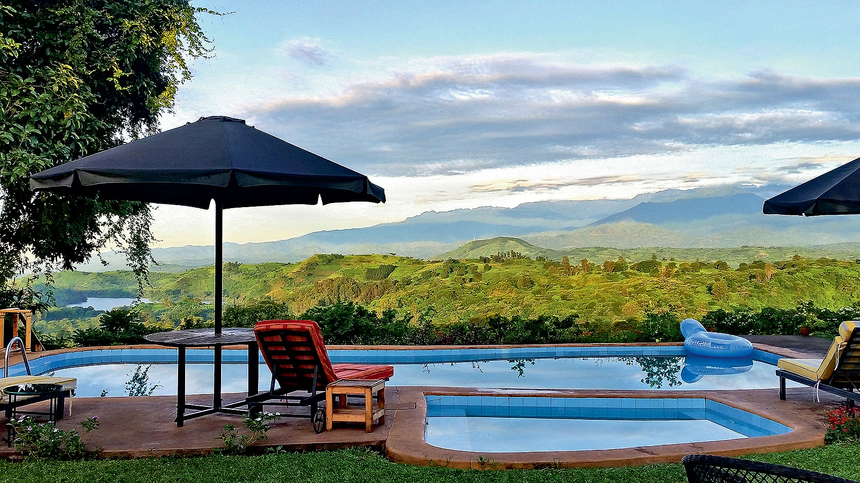 Piemēram. Tu sēdi sava bungalo terasē (guli baseinā) pakalna galā un raugies, kā lejā savannā staigā ziloņi. Vai arī ej vakariņās uz restorānu, bet tev līdzās pa celiņu aizsoļo gorilla (jā, gorillas dažreiz ieklīst viesnīcu teritorijā no kalniem).