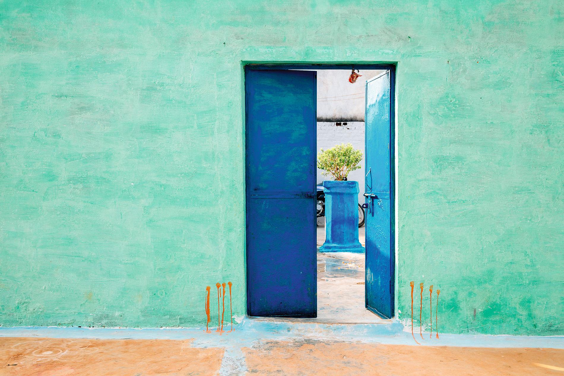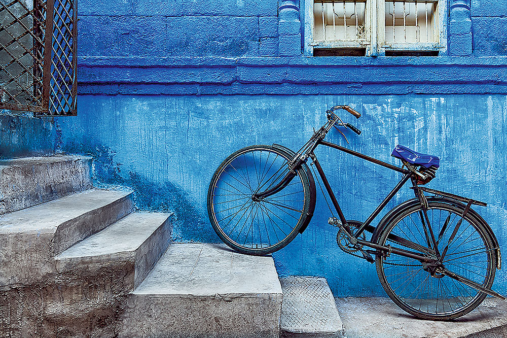 Džodhpūra, Indija Otra lielākā pilsēta Indijā, Radžastānas štatā. Ja uzkāpsi Mehrangarhas cietoksnī, ievērosi, ka visas tuvākās mājas ir zilā krāsā - tā bija augstākās kastas svētkalpotāju brahmaņu namu atšķirības zīme. Lai gan 1950. gadā kastu sistēma tika likvidēta, brahmaņu pēcteči turpina tradīciju. Papildu arguments zili krāsotām namu sienām ir doma, ka tas palīdzēs atvēsināt telpas, kuras bieži sakarst līdz pat 40 grādiem. Tas ir blakus pilsētai esošā tuksneša nopelns. Turklāt tiek uzskatīts, ka zilā krāsa atbaida moskītus un termītus.