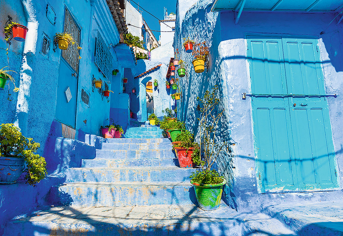Šefšauena, Maroka Sienas, durvis, kāpnes, logu rāmji un pat ielas - viss ir zils, no gaišā līdz indigo toņiem. Leģenda vēsta, ka 50 zilā nokrāsām ir jāatgādina vietējiem iedzīvotājiem par viņu ebreju saknēm, jo tieši šeit pagājušā gadsimta 30. gados patvērumu atrada no Spānijas izdzītie ebreji. Zilibaltie toņi tiek uzskatīti par svētiem, jo simbolizē debesis un Dievu. Pilsētas krāsa tiek atsvaidzināta vairākas reizes gadā.