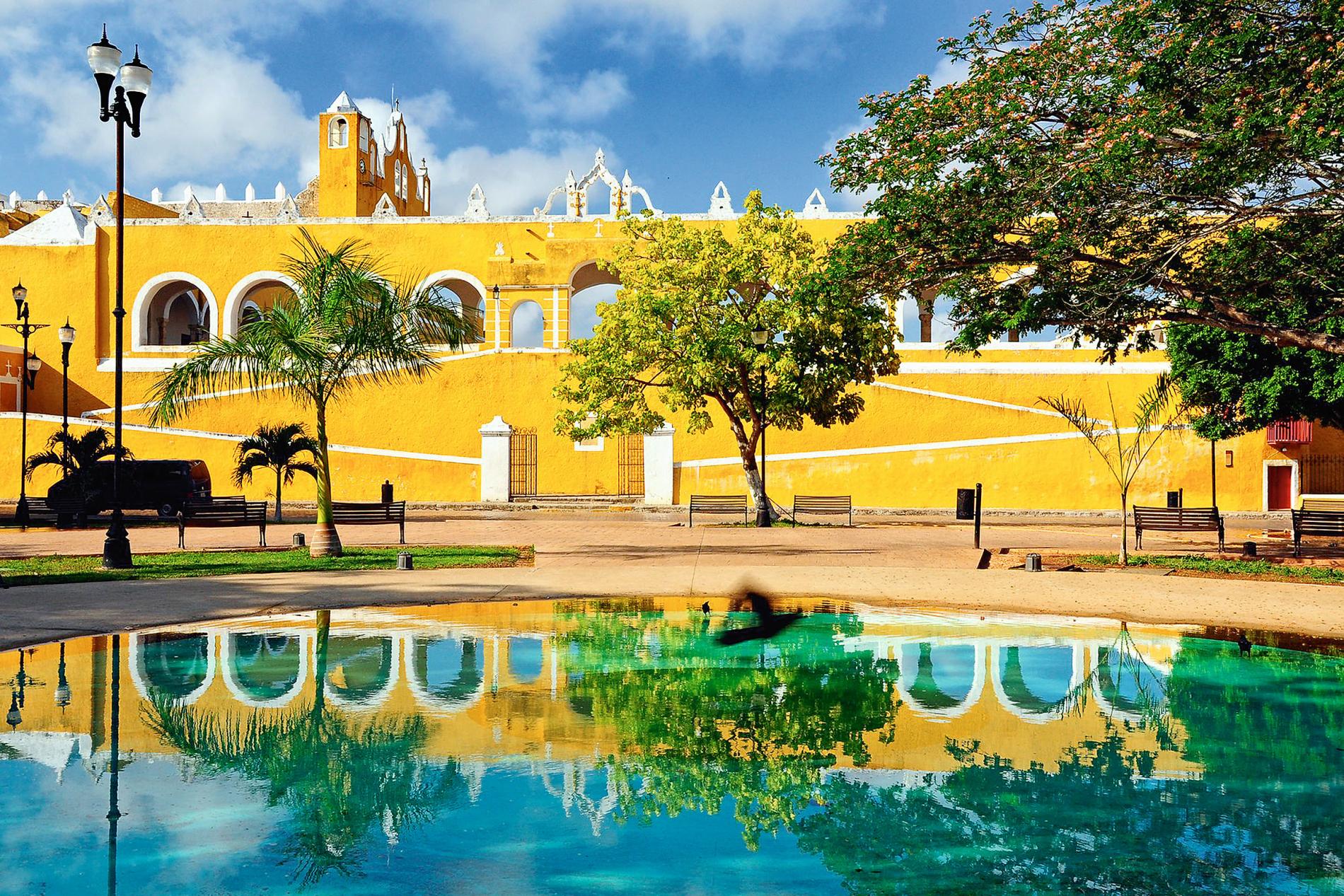Izamala, Meksika Vienīgā pilsēta, kuru Meksikas Tūrisma departaments nodēvējis par maģisko. Viss pilsētas centrs piepildīts ar okras dzelteno par godu Saules dievam, kuru pielūdza senie maiji. Šis kults lieliski sadzīvo ar katoļticību, tās baznīcām un klosteriem. Ne mazāk interesanti, ka bērni skolā mācās spāņu, bet mājās sarunājas maiju valodā.
