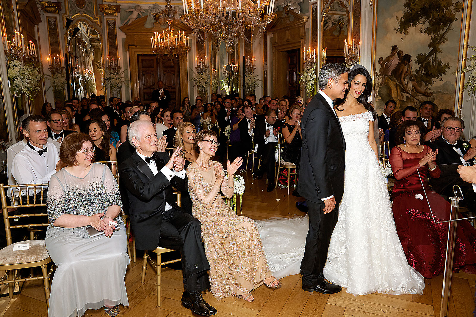 Oficiālā laulības reģistrācija notika Londonā 2014. gada augustā, bet kāzas tika svinētas septembra beigās Venēcijā trīs dienu garumā - tādā intensitātē, ka pat žurnālisti nogura ziņot: «Klūniju lieliskās kāzas beidzot notikušas!» Protams, neiztika bez zvaigžņotu viesu plejādes: 80. gadu supermodele Sindija Krauforde ar vīru, Klūnija labākais draugs aktieris Mets Deimons, leģendārā Vogue redaktore Anna Vintūra, rokzvaigzne Bono… Un Amala oficiāli nomainīja uzvārdu uz Klūnija.