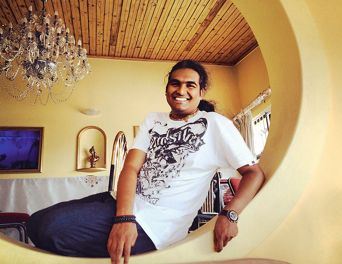 Viņam ir 38 gadi. Viņš ir dzimis indiešu ģimenē Maurīcijas salā un vienmēr atšķīries no vienaudžiem. Viņu neinteresēja sports, tehnika un citu bērnu sabiedrība. Viņš deva priekšroku grāmatām, visu reliģiju tempļiem un sarunām, kurās vairāk klausījās nekā runāja. Skolā viņš arī bija citāds, taču tik labvēlīgs, ka visi viņu mīlēja. Māte ļoti vēlējās, lai viņš kļūtu par inženieri, taču Višvananda tiecās pēc Dieva. Viņš meditēja, meklēja garīgos skolotājus. 13 gadu vecumā nolēma kļūt par veģetārieti. Māte ļoti pārdzīvoja, lika dēlam, ja reiz viņš nav tāds kā citi, savākt mantas un pārcelties uz templi. Kad zēns sāka likt apģērbu mugursomā, apķērās un apsolīja gatavot viņam atsevišķu veģetāru ēdienu. Pēc mēneša ģimenē visi kļuva par veģetāriešiem.