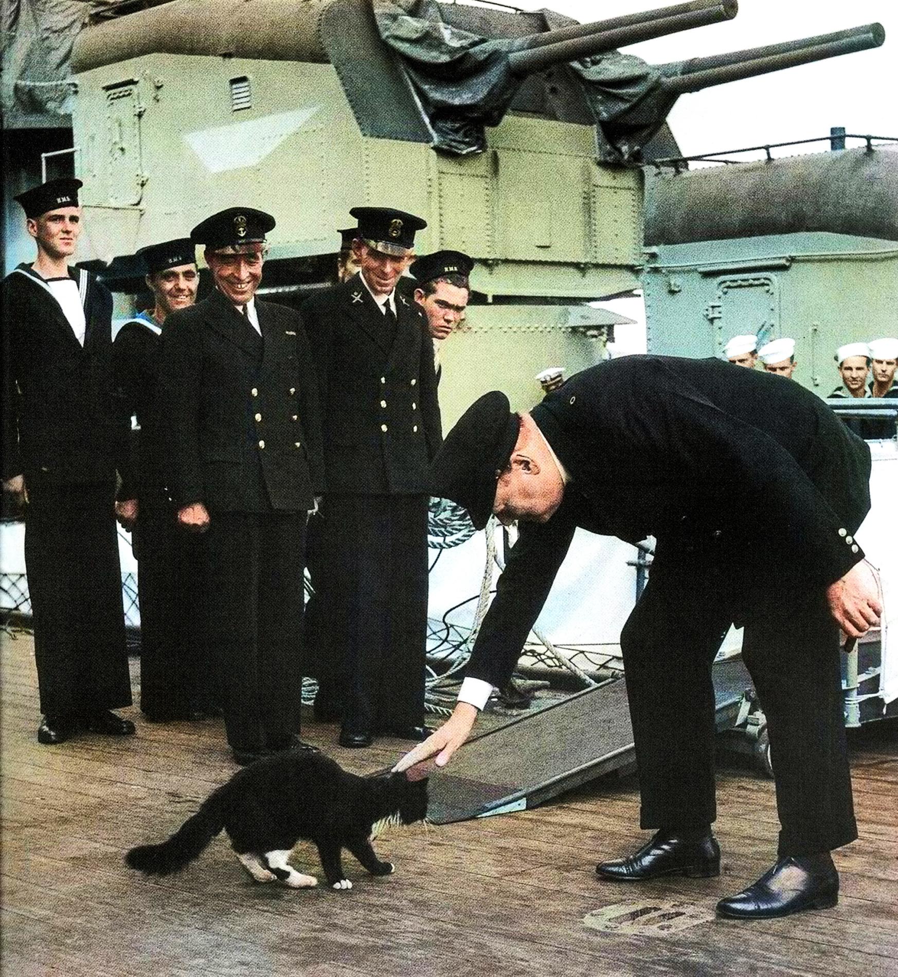 Ne mazums tādu karakuģu kaķu ir guvuši nemirstīgu slavu. Daži kļuva pazīstami, jo vienkārši pamanījās būt īstajā vietā un īstajā laikā. Tāds, piemēram, bija Otrā pasaules kara laika angļu kaujas kuģa Prince of Wales runcis Blekijs. 1941. gada augustā Lielbritānijas premjers Vinstons Čērčils ar Prince of Wales devās pāri Atlantijai, lai pie Kanādas krastiem slepeni tiktos ar ASV prezidentu Franklinu Delano Rūzveltu. Nav zināms, kādas bija Blekija un Čērčila attiecības reisa laikā, taču pēc atgriešanās premjers, pirms nokāpt krastā, uz atvadām noglaudīja runci. To iemūžināja fotogrāfs, un Blekijs iekļuva vēsturē. Kaķi pēc šīs uzmanības izrādīšanas nosauca par Čērčilu. Vārda maiņa gan laimi nenesa, jo 1941. gada nogalē Prince of Wales pie Malaizijas krastiem piedzīvoja Japānas aviācijas uzlidojumu un nogrima. Izdzīvojušie un izglābtie, tostarp arī Blekijs-Čērčils, nonāca Singapūrā, taču viņa turpmākais liktenis nav zināms, jo, kad sākās japāņu uzbrukums un 1942. gadā britu kuģi evakuējās no ostas, kaķis vairs nebija atrodams.