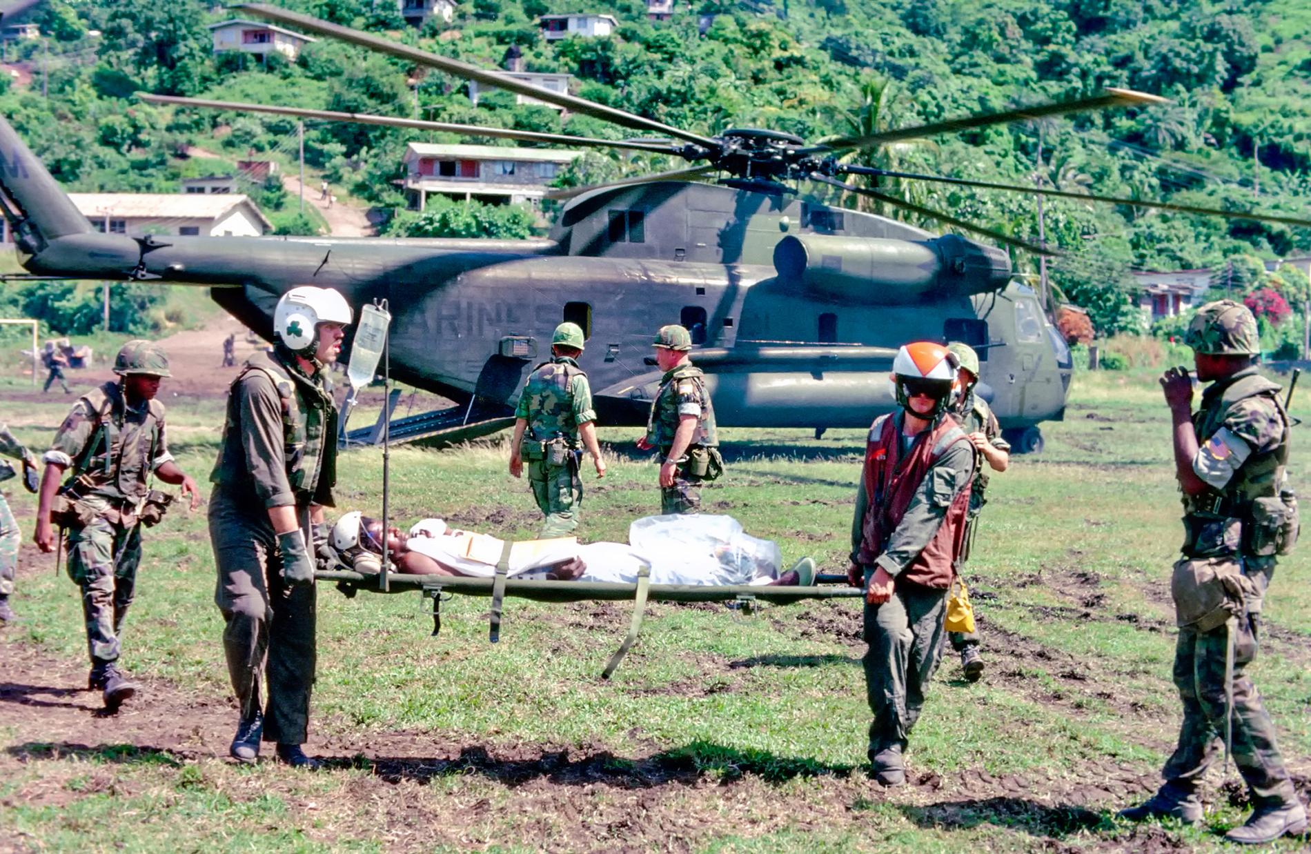1983. gada oktobrī amerikāņu spēki četru dienu laikā parūpējās par valdošā režīma nomaiņu Karību jūras valstiņā Grenādā, kas atrodas kādus 160 kilometrus uz ziemeļiem no Venecuēlas. Lai gan iebrukums nebūt neritēja tik gludi, kā cerēts, milzīgajam pārspēkam bija sava loma, bet Kuba un Padomju Savienība, par kuru satelītu tobrīd jau bija kļuvusi Grenāda, aprobežojās ar savu propagandas kanālu iedarbināšanu uz pilnu jaudu, bet reāli Grenādas «biedriem» nepalīdzēja.