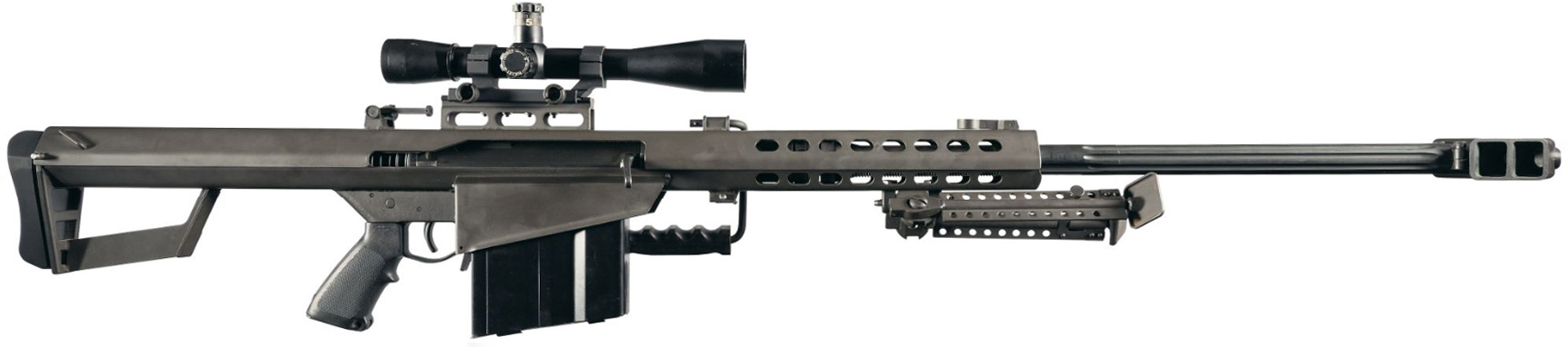 Astoņdesmito gadu beigās izstrādātā snaiperu šautene Barrett M82 ugunskristības piedzīvoja Līča karā, kur to izmantoja amerikāņu jūras kājnieki. Pēc tam to savā bruņojumā pieņēma arī virkne citu valstu armiju, kā arī pa aplinkus kanāliem iegādājās Meksikas un Kolumbijas narkokarteļi. Šā ieroča lielākā priekšrocība ir lielais kalibrs (tiek izmantota tāda pati munīcija kā Browning lielkalibra ložmetējiem) - tas ļauj palielināt šaušanas distanci, turklāt šo šauteni var izmantot pat pret viegli bruņotu tehniku. Lielā šaušanas distance paver arī iespēju Barrett lietot cīņā pret ienaidnieka snaiperiem, kas bruņoti ar vājāku ieroci, piemēram, Dragunova šauteni. Kaut gan optimālā šaušanas distance ir līdz 1800 metriem, meistarīgs strēlnieks to efektīvi var izmantot 2,5 kilometru un vēl lielākā attālumā.