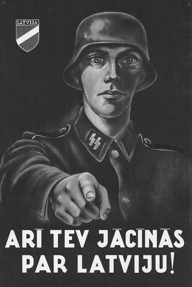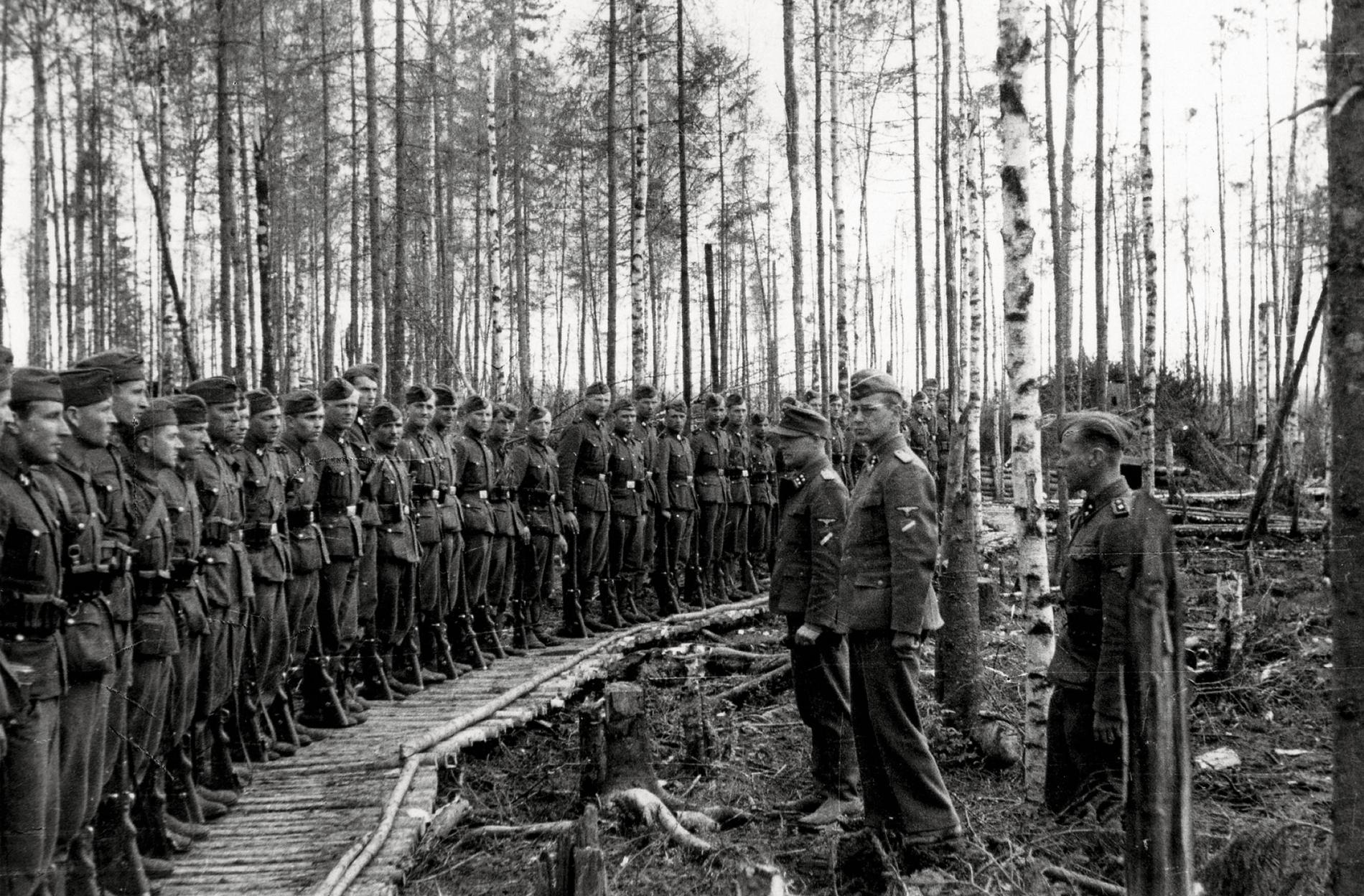 No elites līdz masu karaspēkam. Otrā pasaules kara sākumā Lielvācijas fīrers Ādolfs Hitlers neslēpa savu nostāju, ka «ieroči jānes vienīgi vācu tautai». Citiem vārdiem sakot - saskaņā ar hitlerisko rasu teoriju nepilnvērtīgām tautām nebija paredzēts veidot kaut kādas lielākas militārās formācijas Vācijas tobrīd vēl uzvarošajā armijā. Tiesa, jau kara sākumā Ieroču SS (Waffen-SS) karaspēkā, kas organizatoriski bija atšķirīgs no Vācijas bruņotajiem spēkiem jeb vērmahta, izveidoja atsevišķu «ģermāņu» tautu brīvprātīgo vienības no Dānijas, Norvēģijas, Holandes, Zviedrijas un Beļģijas (flāmu) karavīriem. Ieroču SS tobrīd skaitījās īpaši elitāras karaspēka vienības, kurās dienēt kopā ar īstenajiem «teitoņu pēctečiem» esot liels gods - tā apgalvoja vācu propaganda. Karam iegriežoties Vācijai un tās fīreram ne tik labvēlīgā gultnē, SS karaspēks sāka zaudēt savu elitārismu un no «fīrera gvardes» kļuva par multinacionālu armiju. Vācijas militārā stāvokļa pasliktināšanās, lielie dzīvā spēka zaudējumi, jo īpaši pēc katastrofālās sakāves pie Staļingradas, 1942. gada beigās piespieda Vācijas militāro vadību atteikties no, tā teikt, «rasistiskās pieejas» SS vienību komplektēšanā un nesmādēt arī «nevācu» palīdzību Lielā reiha būvniecības procesā. SS karaspēkā paradījās franču, horvātu, ukraiņu, krievu, baltkrievu, kazaku (kurus vācieši uzskatīja par atsevišķu tautu, kādreizējo gotu pēctečiem), ungāru, valoņu, bosniešu, musulmaņu tautu vienības jeb leģioni. 1944. gadā Ieroču SS karaspēkā dienēja 910 000 vīru, no kuriem gandrīz 60 procenti nebija Vācijas vācieši.