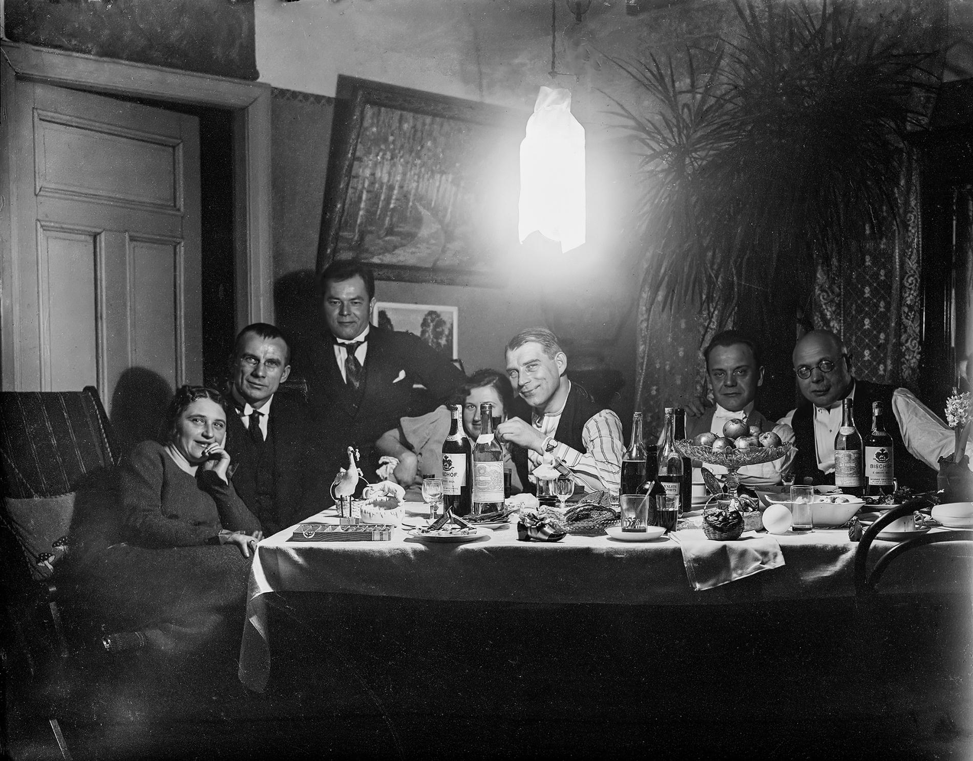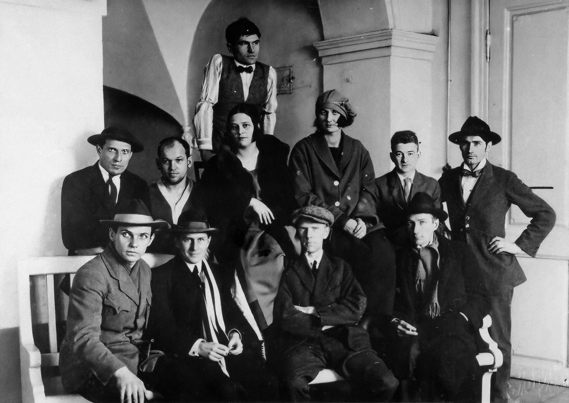 1920. gada pavasarī rīdzinieki piedzīvoja īstu radošo vētru: martā Rīgas pilsētas mākslas muzejā pirmo izstādi sarīkoja vēlāk leģendārā, bet tolaik pavisam jaunā Rīgas mākslinieku grupa - Jēkabs Kazaks, Valdemārs Tone, Konrāds Ubāns, Ģederts Eliass, Oto Skulme, Niklāvs Strunke, Romans Suta, Aleksandra Beļcova, Erasts Šveics, Eduards Lindbergs. Izstāde rāmajā galvaspilsētas gaisotnē uzjundīja emocionālu saviļņojumu, kaut gan nesagatavotie skatītāji modernos meklējumus ne vienmēr spēja izprast. Bet galvenais - šī izstāde pievērsa plašu sabiedrības uzmanību glezniecībai: ja agrāk latviešu gleznu izstāžu apmeklētājus skaitīja simtos, šo apmeklēja 30 tūkstoši. Mākslinieki izstādi noslēdza ar gaviļu pilnu saviesīgu vakaru Ģederta Eliasa dzīvoklī, kurā bez grupas biedriem piedalījās arī viņu kolēģi un mākslas draugi Vilhelms Purvītis, Edvarts Virza, Kristaps Eliass, Maija un Fēlikss Cielēni. Satversmes sapulces deputāts Fēlikss Cielēns vēlāk atcerējās, ka nekādas galda runas netika turētas, bet «draudzības un vīna siltumā radās vēlēšanās arī dejot». Mākslinieki nav skubināmi uz trakulībām. Uz ātru roku sarīkojās muzikanti, par instrumentiem lietojot ķemmes, harmoniju un tējas trumuli. Sieviešu stiprā mazākuma dēļ tika nolemts dažus gleznotājus ietērpt sieviešu drēbēs. Vispiemērotākais izrādījies Konrāds Ubāns, kurš izskatījies kā vismaigākā daiļava. «Daži gleznotāji nomaskējās. Tā Džons Liepiņš pārvērtās par klaunu, Niklāvs Strunke par Pjero, bet gleznotāja [Aleksandra] Beļcova par Kolumbīni.»