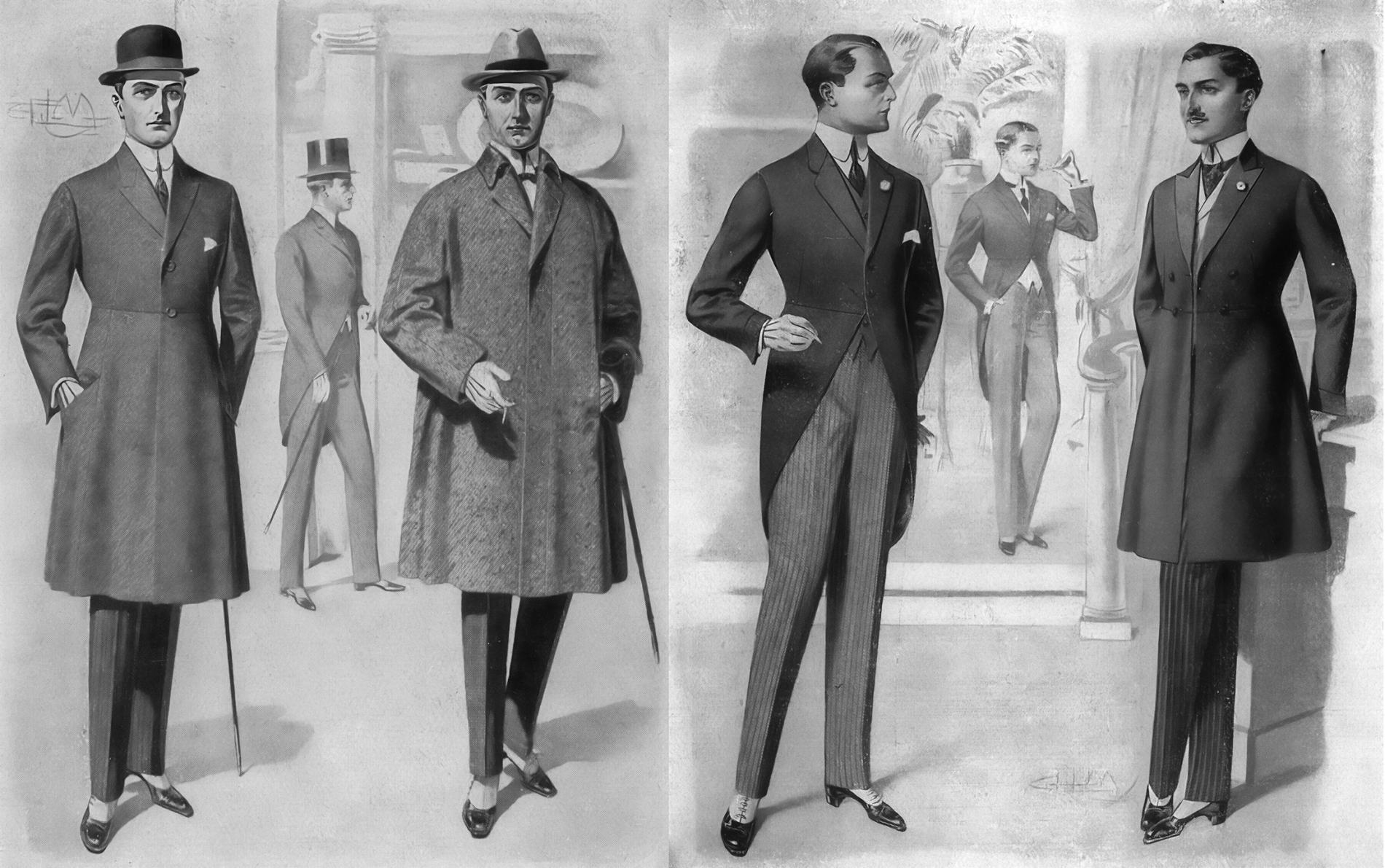 Elegantiem kungiem, protams, bija zināms, ka dienā jāģērbjas ielas uzvalkā, pēcpusdienā - melnos svārkos un svītrainās biksēs, bet vakarā - smokingā. Ja jāpiedalās oficiālās viesībās, tad vēlama fraka. Bet skaidrs arī tas, ka labi pašūta fraka vai smokings maksāja bargu naudu, ko tolaik daudzi nevarēja atļauties. Pat vienmēr elegantais, par intelektuālu ģēniju dēvētais Miķelis Valters, kuru 1919. gada otrajā pusē ārlietu ministrs Zigfrīds Anna Meierovics iecēla par Latvijas diplomātisko pārstāvi Itālijā, vēlāk ar humoru atcerējās saimnieciskās grūtības, kas pastāvēja pat mūsu diplomātiem. «Man Romā bija jāiet akreditēties, bet trūka frakas. Arī naudas man nebija tās iegādei. Sagrabinājis kādu mazumiņu, iegādājos sev vienu daudzmaz piemērotu Rīgas utenī, apvalkāto drēbju nojumē, šī fraka man vēl diezgan ilgi kalpoja. Man likās, ka tā nemaz nav tik neizskatīga.»