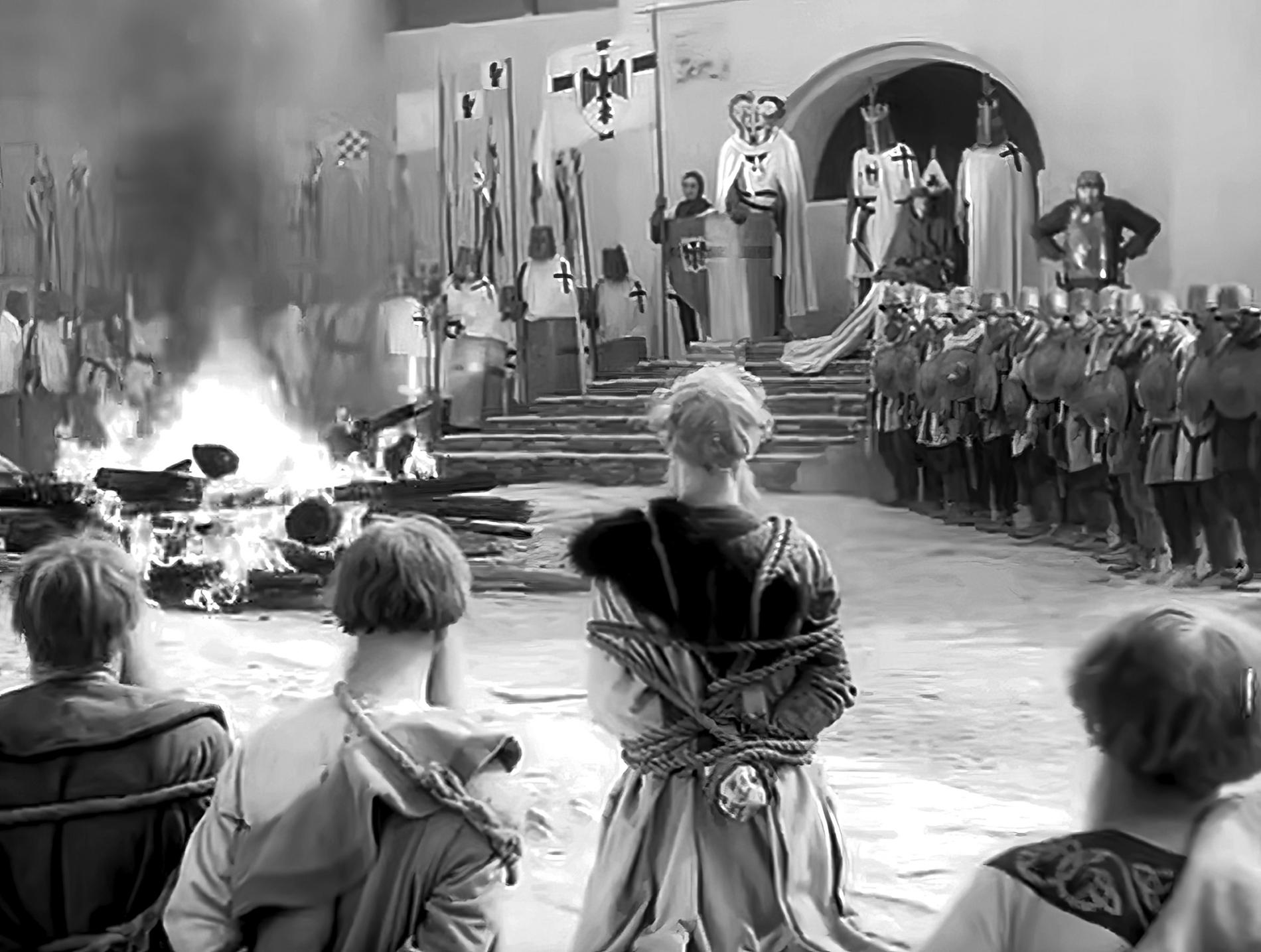 Eizenšteins pielika lielas pūles, lai teitoņu bruņiniekus parādītu kā monstrous