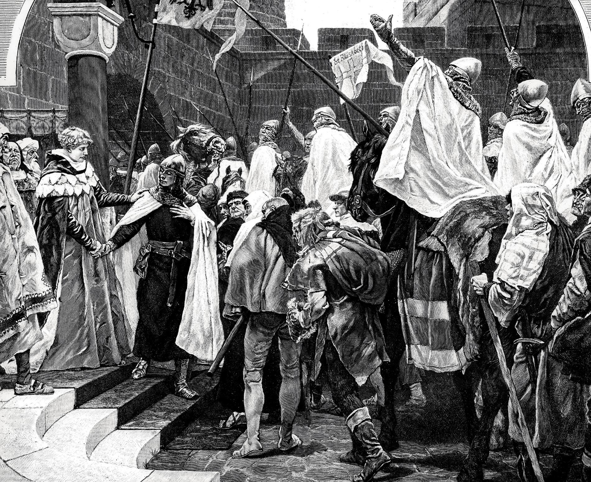 Politiskā dzīve Eiropā XII un XIII gadsimta mijā mutuļoja. Varenības apogeju sasniedza Romas katoļu baznīca, pāvesta amatā tobrīd bija leģendārais Inocents III. Bija izsludināts Trešais krusta karš, kurā piedalījās Anglijas karalis Ričards Lauvassirds, Svētās Romas vācu Cēzars jeb ķeizars Fridrihs Barbarosa, Francijas karalis Filips II Augusts. Krusta karos būtisku politisko ietekmi un militāro spēku demonstrēja garīgo bruņinieku ordeņi - joanīti jeb hospitālieši un templieši. Bruņinieku ordeņos apvienojās krustneši, kas līdz ar iestāšanos brālībā kļuva par mūkiem - ar zvērestu solīja paklausību, celibātu un atteikšanos no mantības, turklāt vienlaikus zvērēja ar zobenu rokās cīnīties pret ticības ienaidniekiem. Ordeņa dalībnieki viens otru dēvēja par brāļiem, līdzīgi kā to darīja mūku ordeņos.