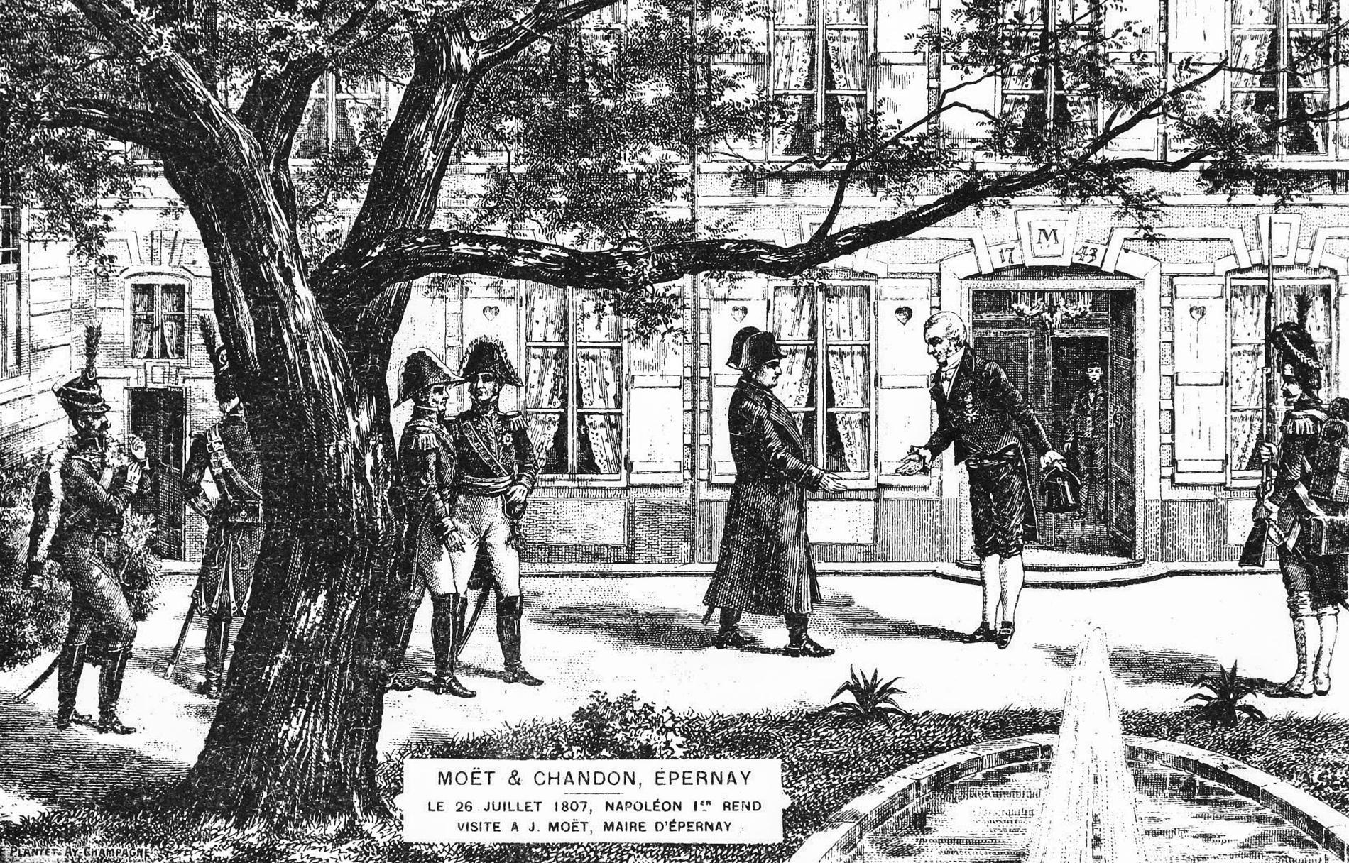 Napoleona vecākiem piederēja neliels vīna dārzs, kurā puikam bērnībā nācās pastrādāt, taču šis laika sprīdis bija īss, jo jau deviņu gadu vecumā viņu atdeva mācīties karaliskajā kara akadēmijā, kas atradās Šampaņas provincē. Tur tad arī Napoleons iepazinās ar Žanu Remī Moē, kurš meklēja pircējus savam šampanietim. Starp citu, jaunu tirgu meklēšanā Moē bieži vien bija soli priekšā konkurentiem un piegādāja šampanieti pat ASV pirmajam prezidentam Džordžam Vašingtonam, tiesa, ļoti nelielos apjomos. Napoleonam kā cilvēkam, kurš orientējās vīnkopībā, bija uzticēts revolūcijas vārdā konfiscēt klosteriem piederošos vīna laukus, un te tad arī krustojās viņa un Moē ceļi, jo pēdējais cerēja ar jaunā virsnieka palīdzību uzlabot savas biznesa lietas. Bet, kad Napoleons nonāca varas virsotnē, pazīšanās ar viņu Moē pavēra milzīgas perspektīvas. Kaut gan Napoleona gaume gastronomijas jautājumos, kā mēs jau zinām, nebija izsmalcināta, šampanietis viņam ļoti gāja pie sirds. Kā raksta šampanieša vēstures pētnieki Dons un Petija Kledstrapi, viņam esot pieticis ar vienu glāzi, lai «atjaunotu spēkus un uzlabotu garastāvokli».