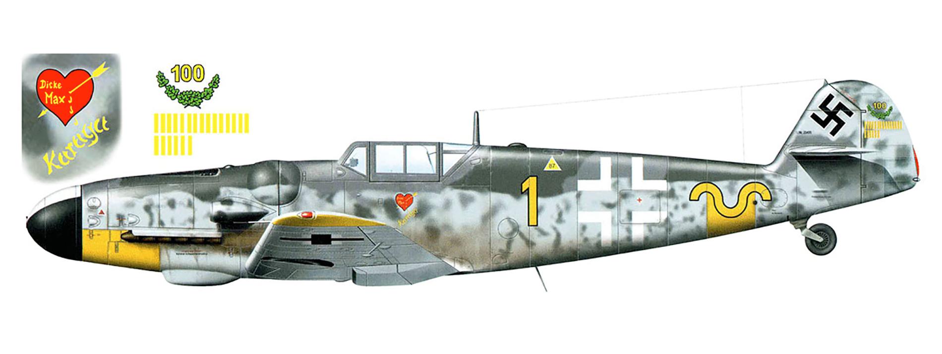 Ja atgriežamies pie uzvaru uzskaites uz lidmašīnas astes, tieši JG.52 radās ideja neatzīmēt katru atsevišķu uzvaru, bet grupēt tās desmitos un simtos - kā nu kuram. Kopējo uzvaru skaitu ierakstīja ozollapu vainagā - 50, 100, 150, 200... Reizēm blakus uzzīmēja Dzelzs krustu vai ordeņa lenti, dažreiz arī notriekto lidmašīnu pazīšanās zīmes. Skaitlis vainagā varēja arī nebūt apaļš.