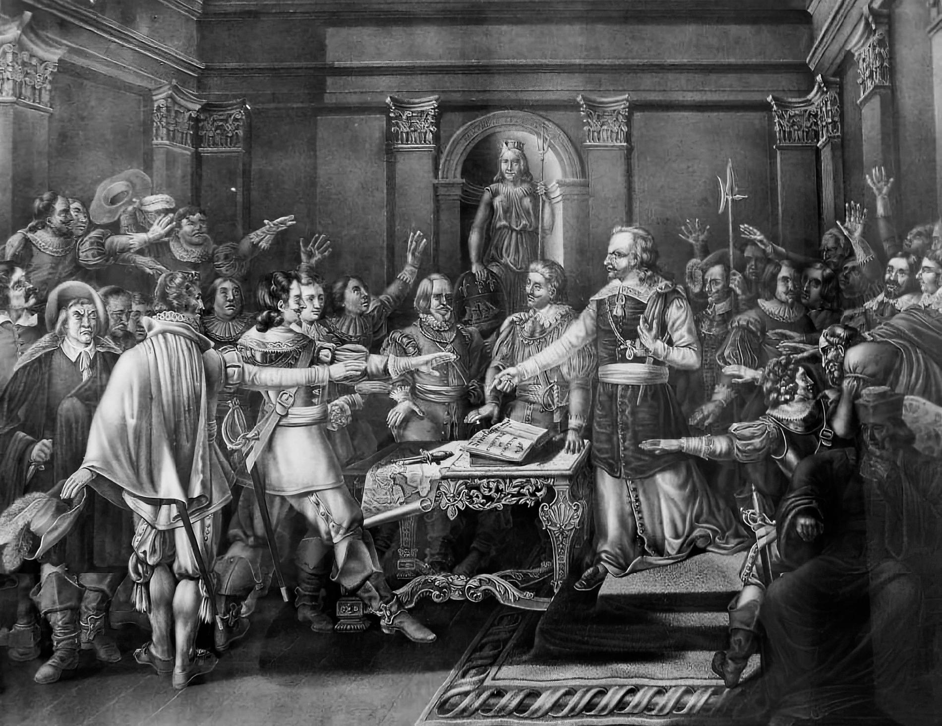 Luijs XIII pieņem Larošelas kapitulāciju.