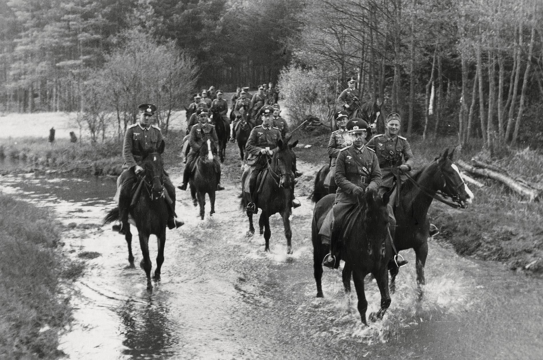 Karā pret Poliju vācieši bez motorizētajām vienībām un kājniekiem izmantoja kavalērijas brigādi, kurā bija 6600 karavīru, 4552 zirgi, 409 zirgu pajūgi, 318 motociklu un 427 automašīnas. Vēlāk šo brigādi pārveidoja par 1. kavalērijas divīziju, kas piedalījās arī operācijās Nīderlandē, Beļģijā un Francijā. Uzbrukumā gan kavalēristi nedevās zirgu mugurā, bet gan nokāpa no tiem un darbojās kā kājnieki, izmantojot karabīnes vai mašīnpistoles, kas parocīgo izmēru dēļ bija iekļautas jātnieku bruņojumā. Šādai metodei gan bija arī trūkums, jo no katriem četriem kavalēristiem kaujā varēja piedalīties tikai trīs, kamēr ceturtajam nācās pieskatīt zirgus.