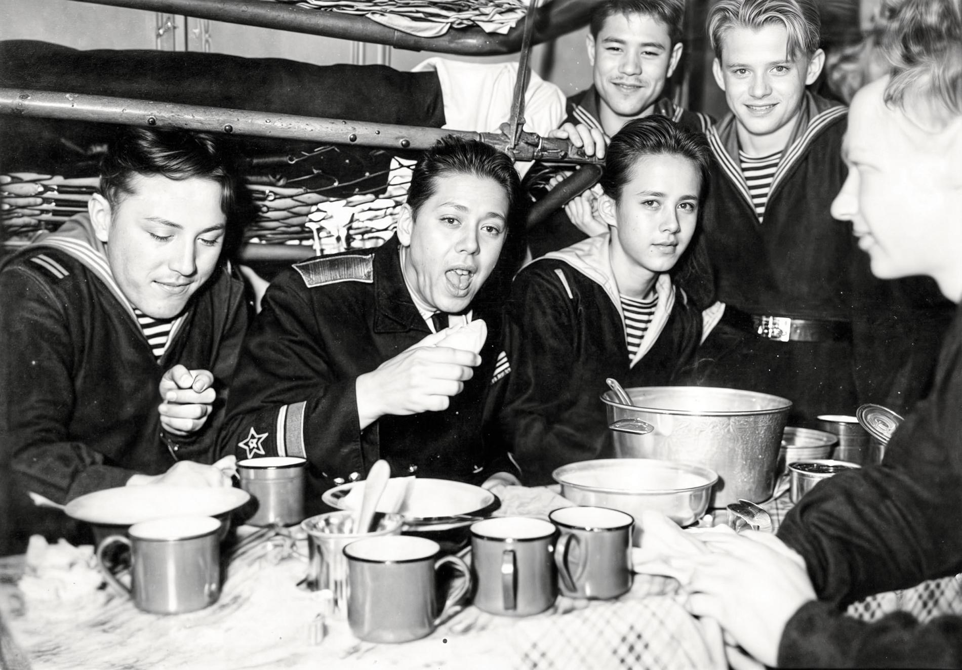 Kāpēc tieši zemūdeņu jūrniekiem bija vislabākā ēdināšana starp visu ieroču šķiru pārstāvjiem? Kara vēsturnieki apgalvo, ka šī tradīcija radusies Otrā pasaules kara laikā un bagātīgs galds bijis kā balva par veiksmīgām kaujas operācijām. Arī bada laikos zemūdeņu ekipāžas ēdināja ar bifštekiem, mājas desām un pat omāriem! Tā bija gan padomju flotē, gan Trešā reiha Kriegsmarine. Vēl vācu jūrniekiem bija tradīcija, kad pēc pretinieku karakuģa nogremdēšanas mājās tos sagaidīja ar ceptu sivēnu. Nekas tāds nebija iespējams ne sauszemes spēkos, ne gaisa aviācijā. Lai kādos laikos viņi dienētu, pārtikas programmas kontekstā zemūdens jūrnieki sevi vienmēr ir uzskatījuši par īstiem veiksminiekiem.