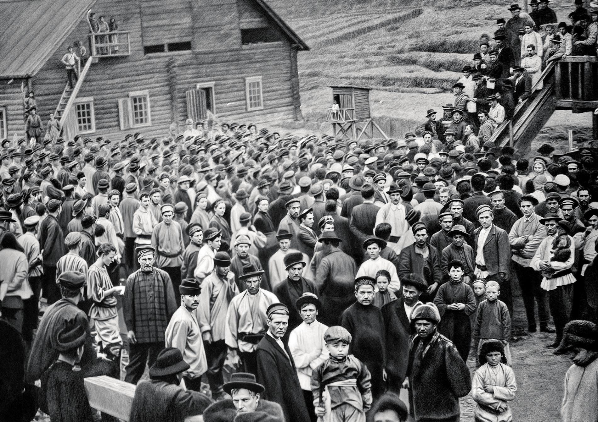 Atlantijas okeānā 1912. gada 15. aprīlī nogrima Titāniks. Sākumā avīzes rakstīja, ka upuru neesot. Vēl vēstīja, ka kuģa tilpnēs bijusi liela zelta krava. Tikmēr pasaules otrā malā, Sibīrijā, tajā pašā laikā apšāva zeltračus, kuri bija sadumpojušies pret neciešamajiem sadzīves apstākļiem. Raktuvju īpašnieki vērsās pēc palīdzības pie policijas un armijas vadības, un dumpja apspiešanā bojā gāja vismaz 150 cilvēku, bet saskaņā ar citu versiju pat gandrīz tūkstotis. Taču tā bija tikai sīka epizode asiņainajā cīņā par zeltu, kas XX gadsimta sākumā izvērsās Sibīrijas taigā, kur pilnā sparā plosījās «zelta drudzis».