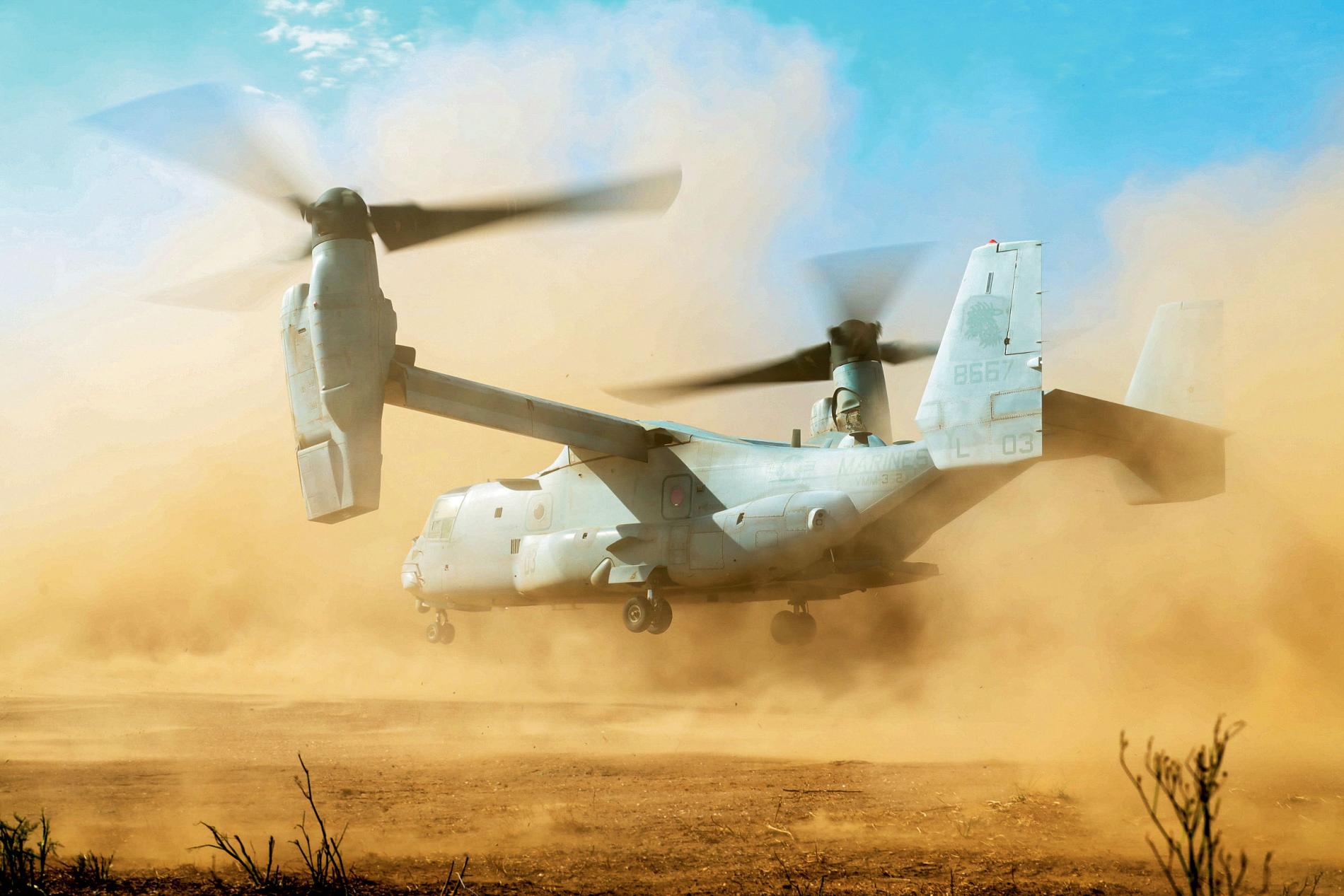 Pie šī lidaparāta divas amerikāņu kompānijas - Bell un Boeing - strādāja gandrīz 30 gadus. Rezultātā tapa kaut kas īpašs pasaulē vienīgais konvertoplāns. Vienkāršākā valodā izsakoties, lidaparāts, kas apvieno lidmašīnas un helikoptera īpašības. Horizontālā lidojumā Osprey pārvietojas kā parasta lidmašīna, ko uz priekšu dzen divi motori ar propelleriem. Taču vajadzības gadījumā šos motorus var pagriezt 90 grādu leņķī uz augšu, un tad Osprey kļūst par helikopteru, kam nosēžoties un paceļoties nav nepieciešams skrejceļš. Turklāt lidmašīnās korpusa būvē ir izmantoti kompozītu materiāli, lai to padarītu maksimāli vieglu.