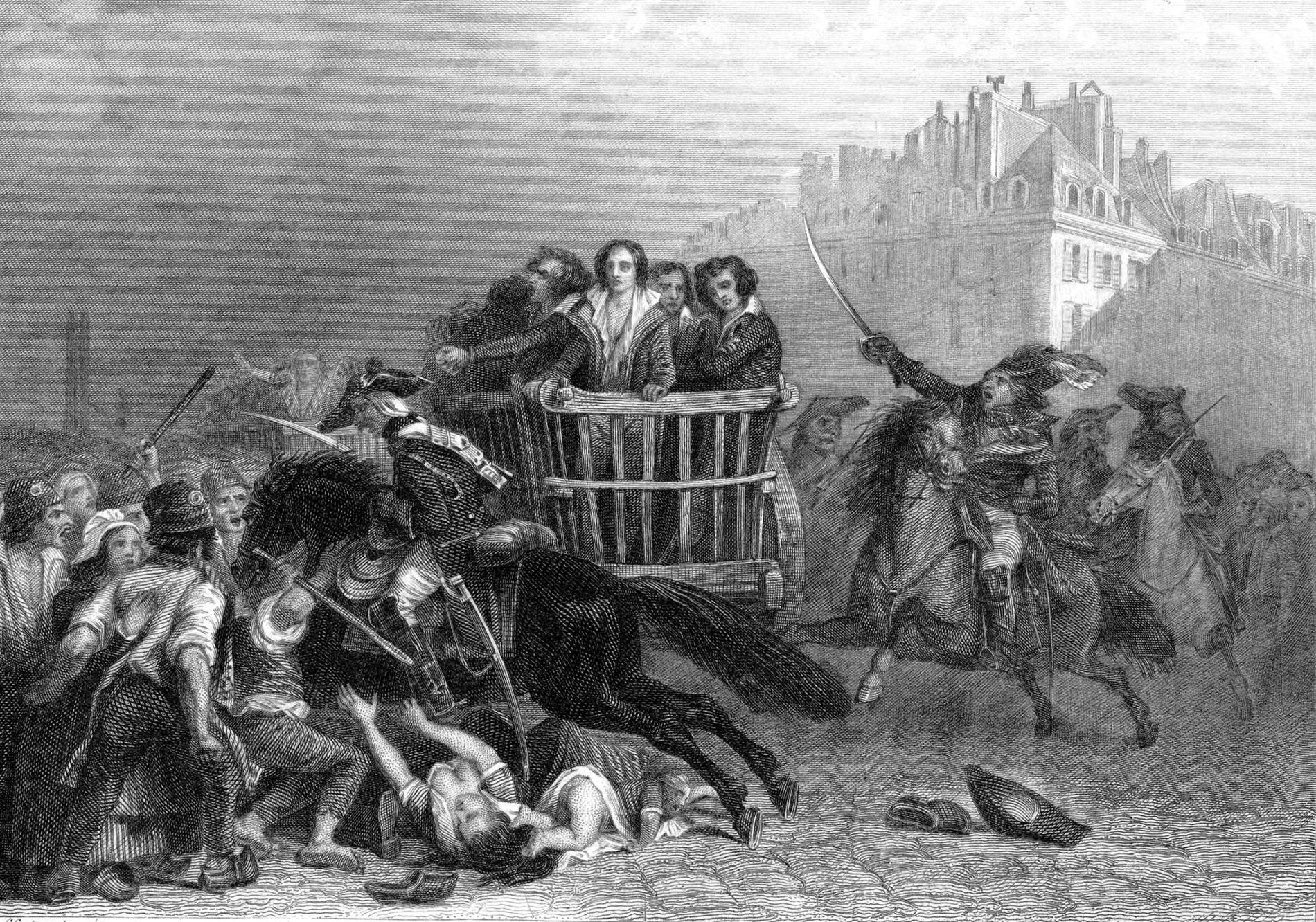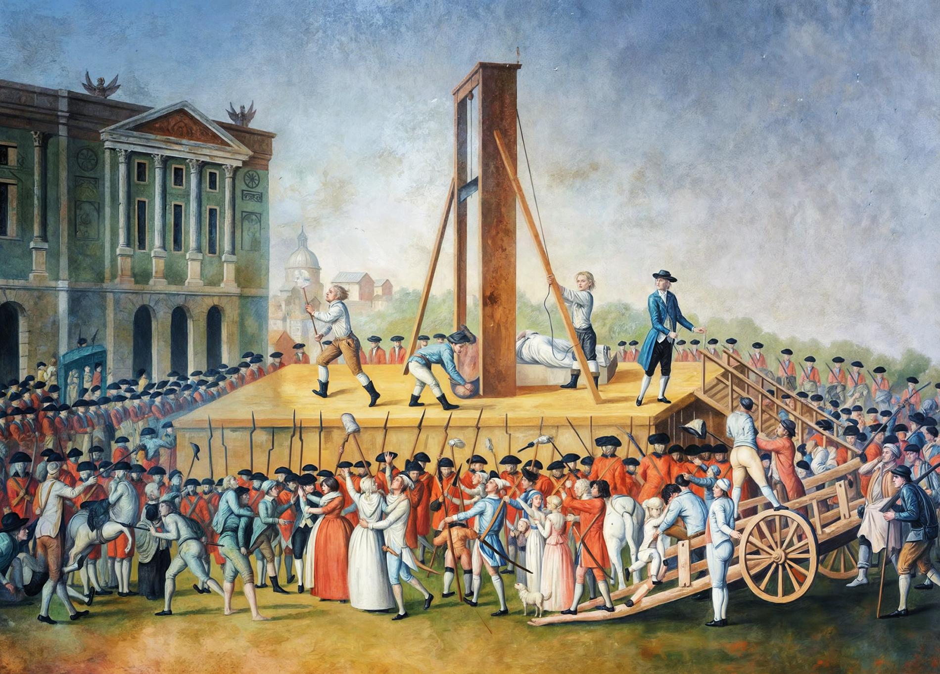 Revolūcijas pārņemtajā valstī plosījās tik vērienīgs terors un represiju vilnis, ka pat Staļins uz to noraudzītos ar cieņu. Pirmajiem pie rīkles, protams, ķērās muižniekiem. Aristokrātu linčošana kļuva par ierastu lietu, jo pietika tikai ar aizdomām par simpatizēšanu monarhijai, lai nelaimīgo uzrautu tuvākajā zarā. Ātru nāvi varēja uzskatīt par lielu veiksmi. Cik perversas izpausmes varēja pieņemt revolucionārā izrēķināšanās kāre, uzskatāmi liecina karalienes galmadāmas de Lambālas bēdīgais gals. Iesākumam satrakotais pūlis viņu izvaroja, tad izsita visus zobus un nogrieza galvu. Ar to sadistiem likās par maz - viens no revolucionāriem uzšķērda līķim vēderu, aptinās ar aristokrātes zarnām, izgrieza viņai sirdi un, pūlim gavilējot, sāka to ēst. Tad sievietes ķermeni sacirta gabalos un, uzdurot uz pīķiem, ilgi staipīja apkārt pa visu pilsētu. Pēc brīža kādam ienāca prātā, ka arī karalienei būtu pamācoši redzēt šo satriecošo skatu. Pūlis ieradās pie viņas ieslodzījuma vietas un ilgi staigāja gar logiem, aicinot Mariju Antuaneti nākt palūkoties uz savu draudzeni.