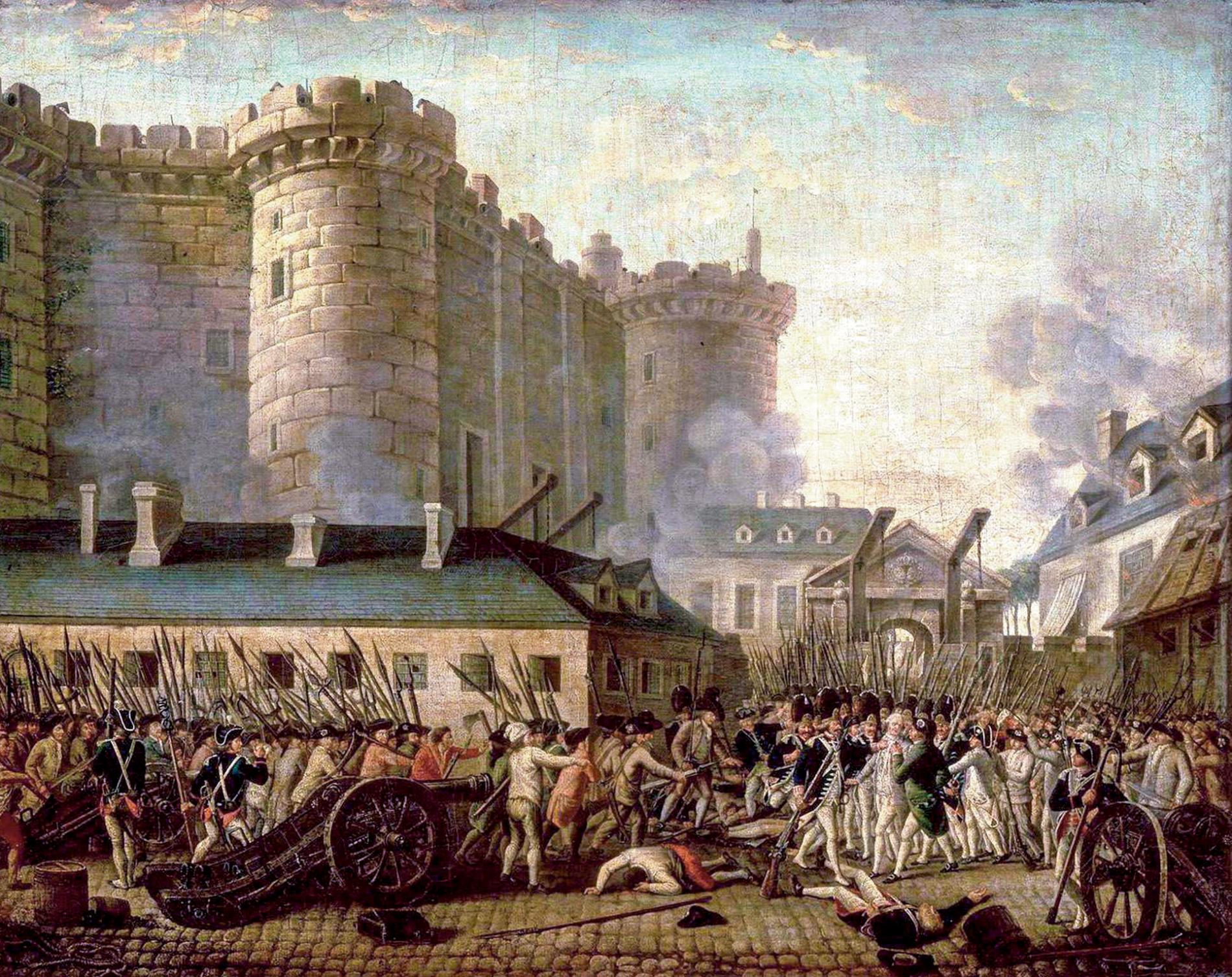 1789. gada 14. jūlijs Francijas vēsturē ir ierakstīts ar lieliem burtiem. Todien pūlis devās uzbrukumā Bastīlijai - vecam cietoksnim ar baisu slavu, jo tas ilgus gadus bija kalpojis kā cietums. Tiesa, 14. jūlijā tur ieslodzījumā atradās vien aptuveni desmit cilvēku, turklāt tie paši par krimināliem nodarījumiem. Uzbrukuma mērķis - pilsētnieki vēlējās iegūt šaujampulvera krājumus, kas, kā runāja, glabājās Bastīlijā. Kaut gan vārdu salikums «Bastīlijas šturmēšana» izklausās cēli un heroiski, patiesībā nekā varonīga tur nebija. Sākumā pilsētnieki pieprasīja, lai cietokšņa komandants atver vārtus, bet viņš atteicās to darīt un izšāva pāris brīdinājuma šāvienu no lielgabala. Sarunām turpinoties, komandants piekrita kopā ar garnizonu (tajā pārsvarā bija savākti gados veci savu laiku jau nodienējuši karavīri) padoties ar noteikumu noteikumu, ka pūlis viņus neaiztiks. Komandants savu solījumu pildīja, taču pūlis gan ne - uzreiz pēc padošanās visu garnizonu nogalināja.