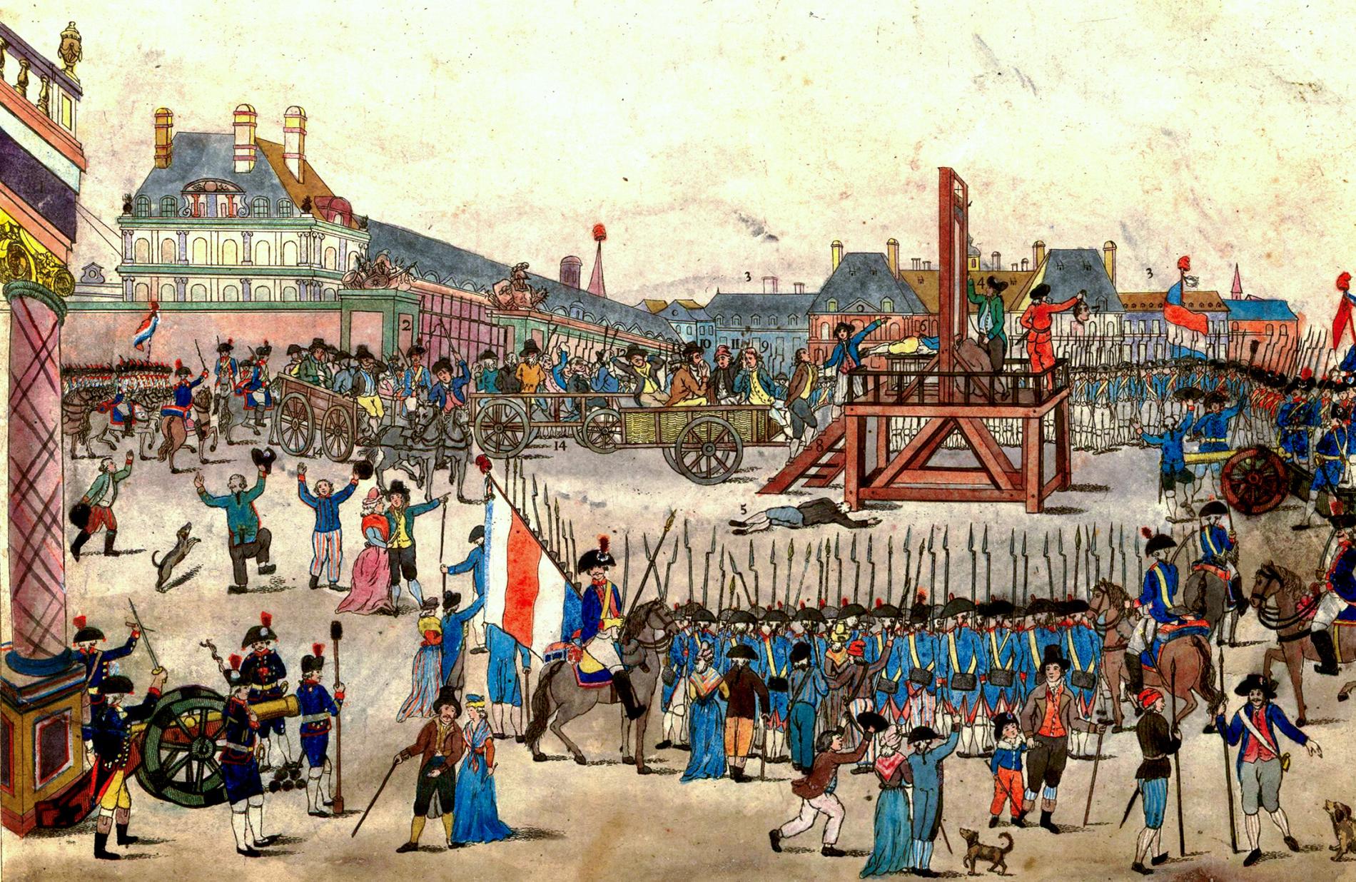 Te tad arī lieti noderēja giljotīna. Tikuši galā ar nīstajiem aristokrātiem, divi konkurējošie revolucionārie grupējumi - žirondisti un jakobīņi - sāka vīt intrigas viens pret otru, sacenšoties, kam izdosies uz giljotīnu nosūtīt pēc iespējas vairāk tautas ienaidnieku. Revolūcija aprij savus bērnus - šī patiesība Francijā tika pierādīta pēc pilnas programmas. Pēc karaļa, karalienes un aristokrātiem galvas viens pēc otra sāka zaudēt nesenie kvēlie revolucionāri un cīnītāji par līdztiesību. Viena frakcija uz ešafota nomainīja otru: žirondisti, dantonisti un ebertisti, beigu beigās arī viens no lielākajiem terora sludinātājiem Robespjērs.